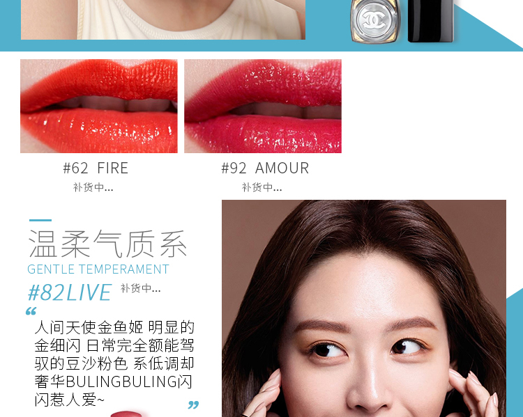 香奈儿炫光唇膏coco flash#92 amour🌟草莓红🍓,带蓝调的玫红,细闪粉红色✨,厚涂是浓郁的草莓汁,薄涂是浅玫瑰色🌹。非常显白,有气场,是那种优雅高贵的颜色💃,不挑肤色,超级超级润💦,又好用又美有什么理由不买它😍😍😍~