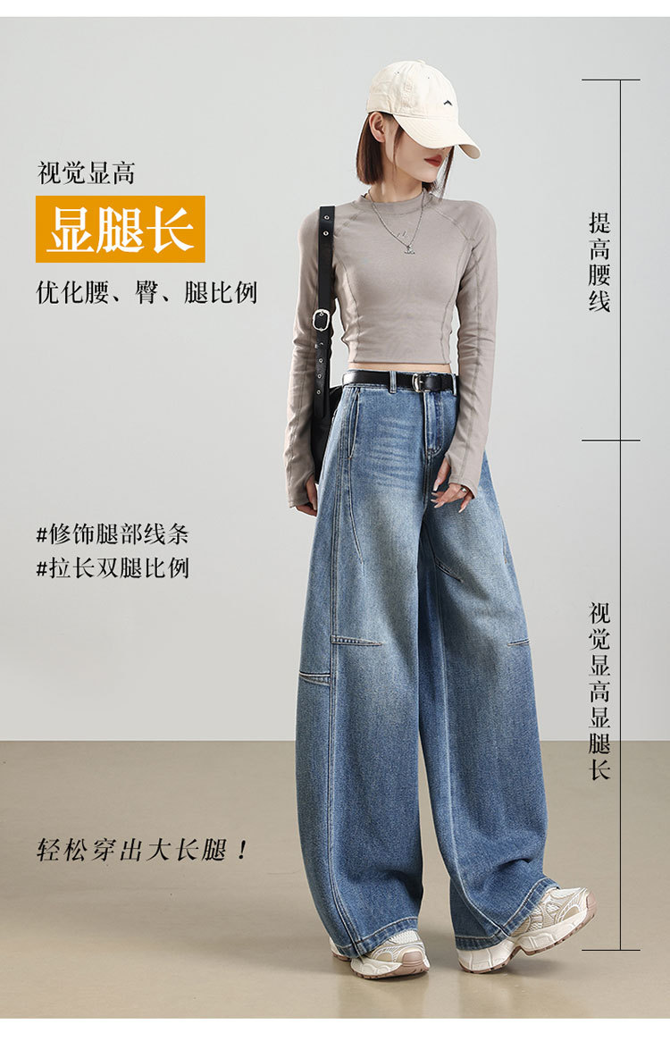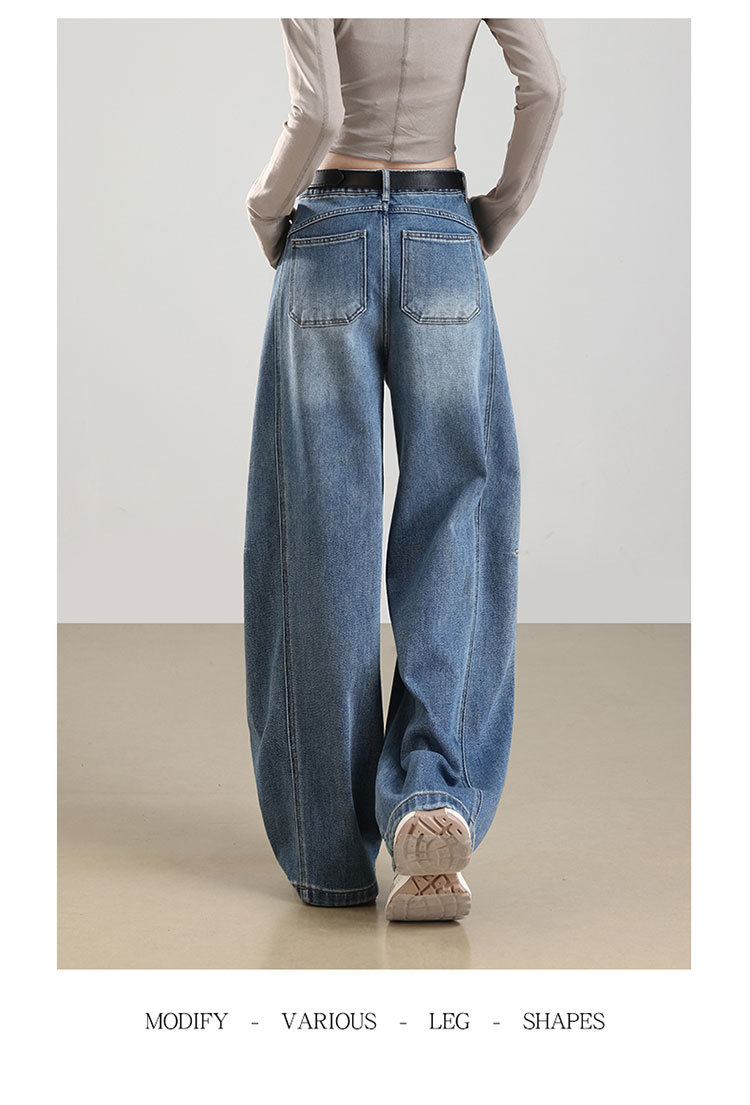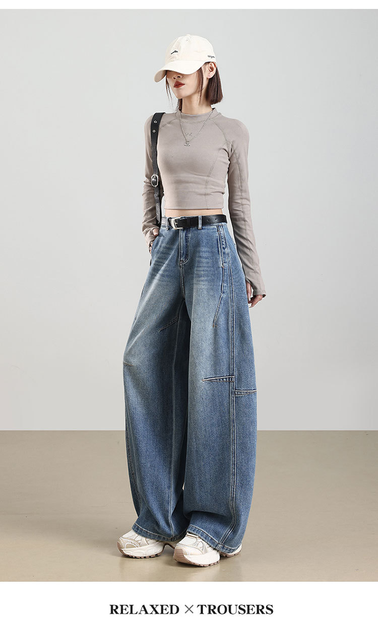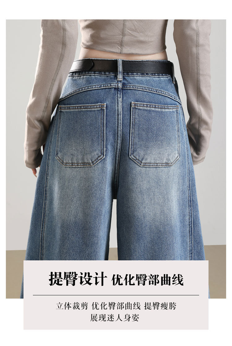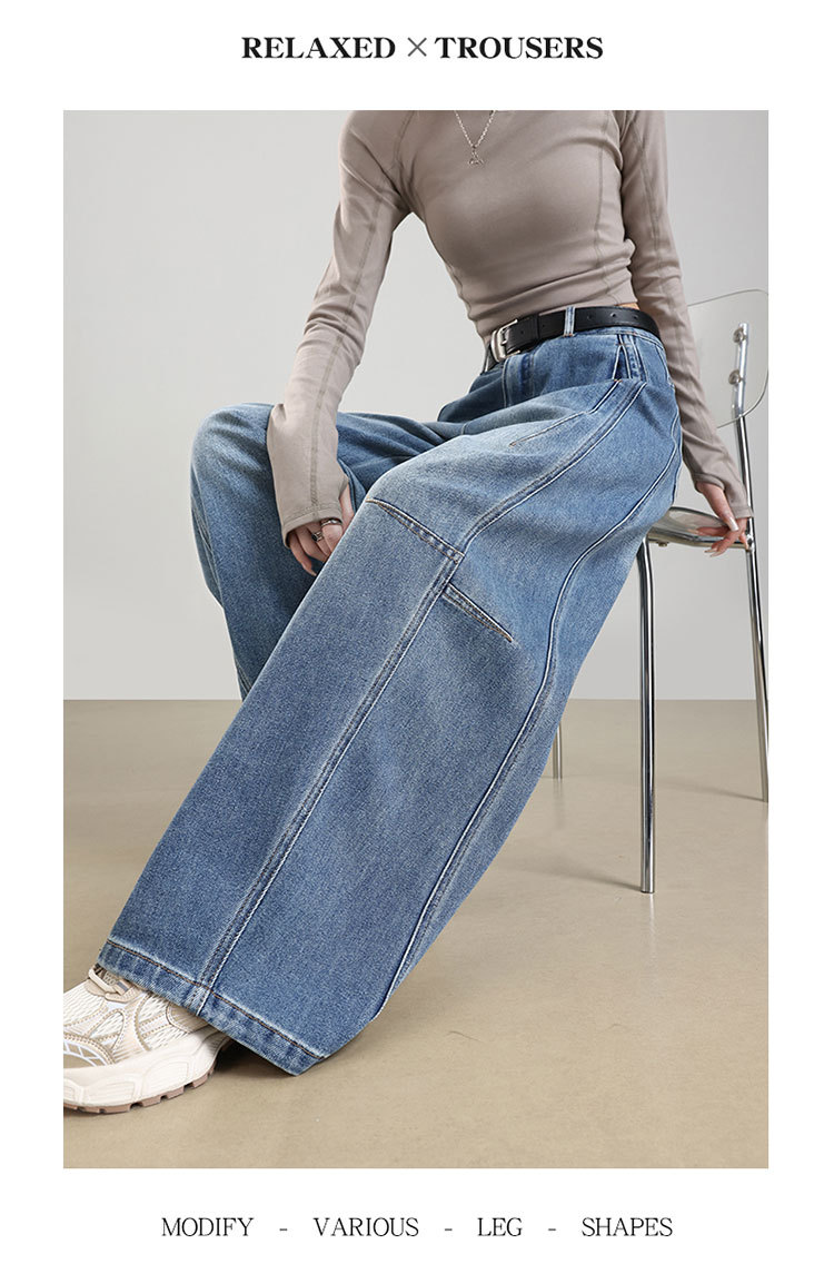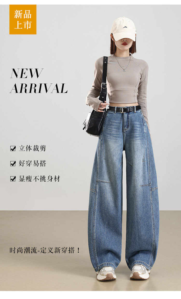 MYX蓝色牛仔弯刀裤2026年春季新款宽松显瘦阔腿裤长款高腰休闲拖地裤