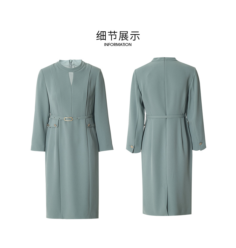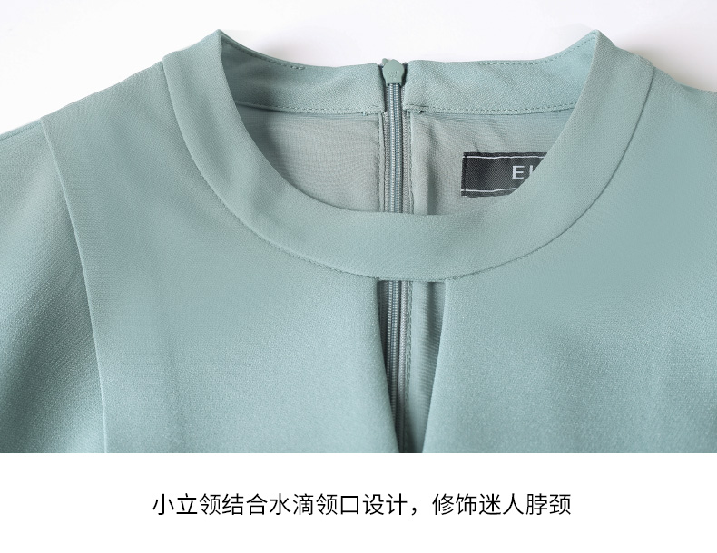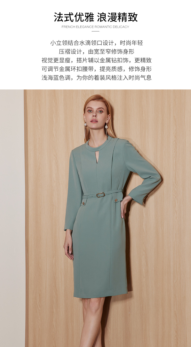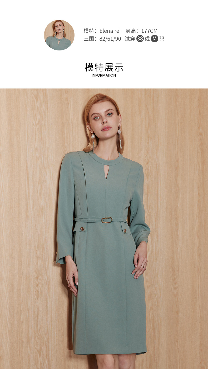 EITIE爱特爱品牌女装春季新款时尚修身高腰圆领连衣裙中裙A1907039