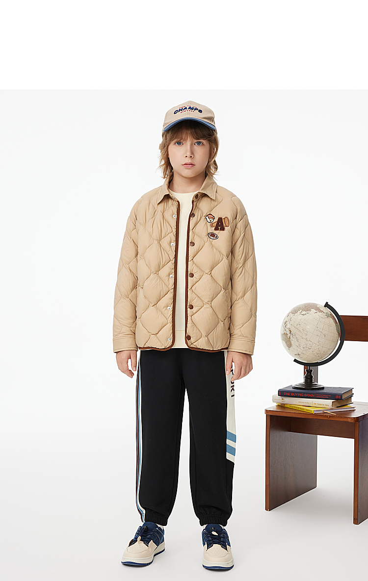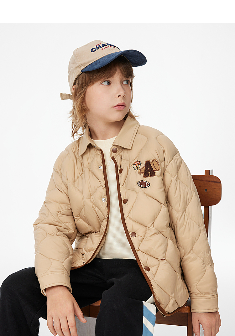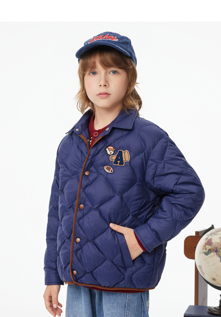 【MQD】童装男童羽绒服冬装压纹翻领白鸭绒短款早春轻薄羽绒衬衫