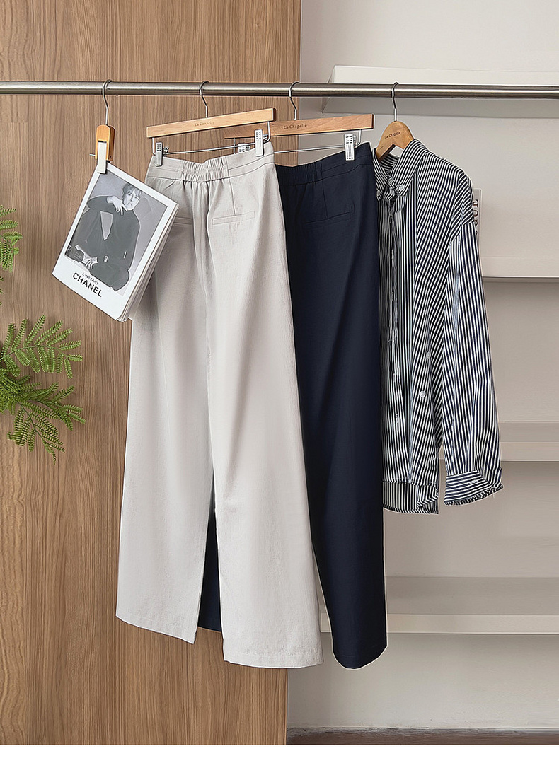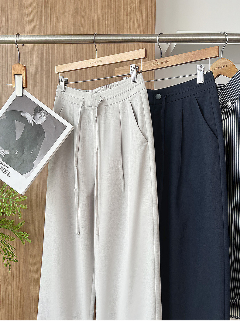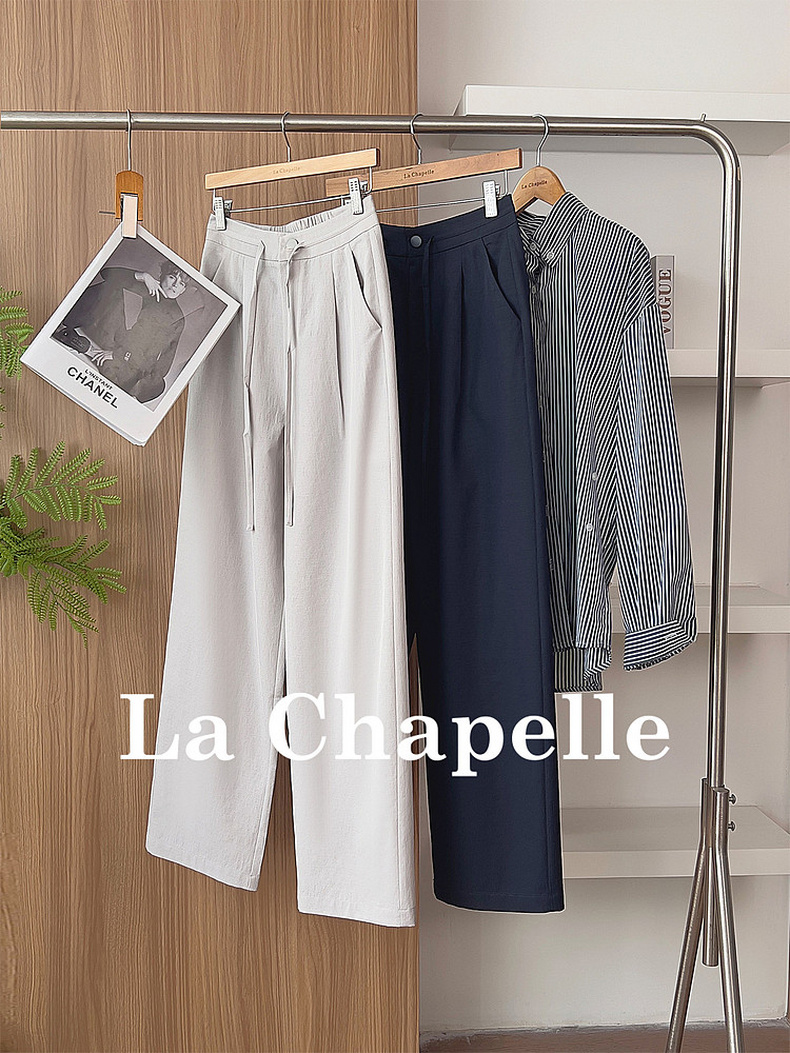 专柜实拍【垂坠/抗皱】拉夏贝尔/La Chapelle系带后松紧腰垂感休闲裤时髦显瘦女长裤