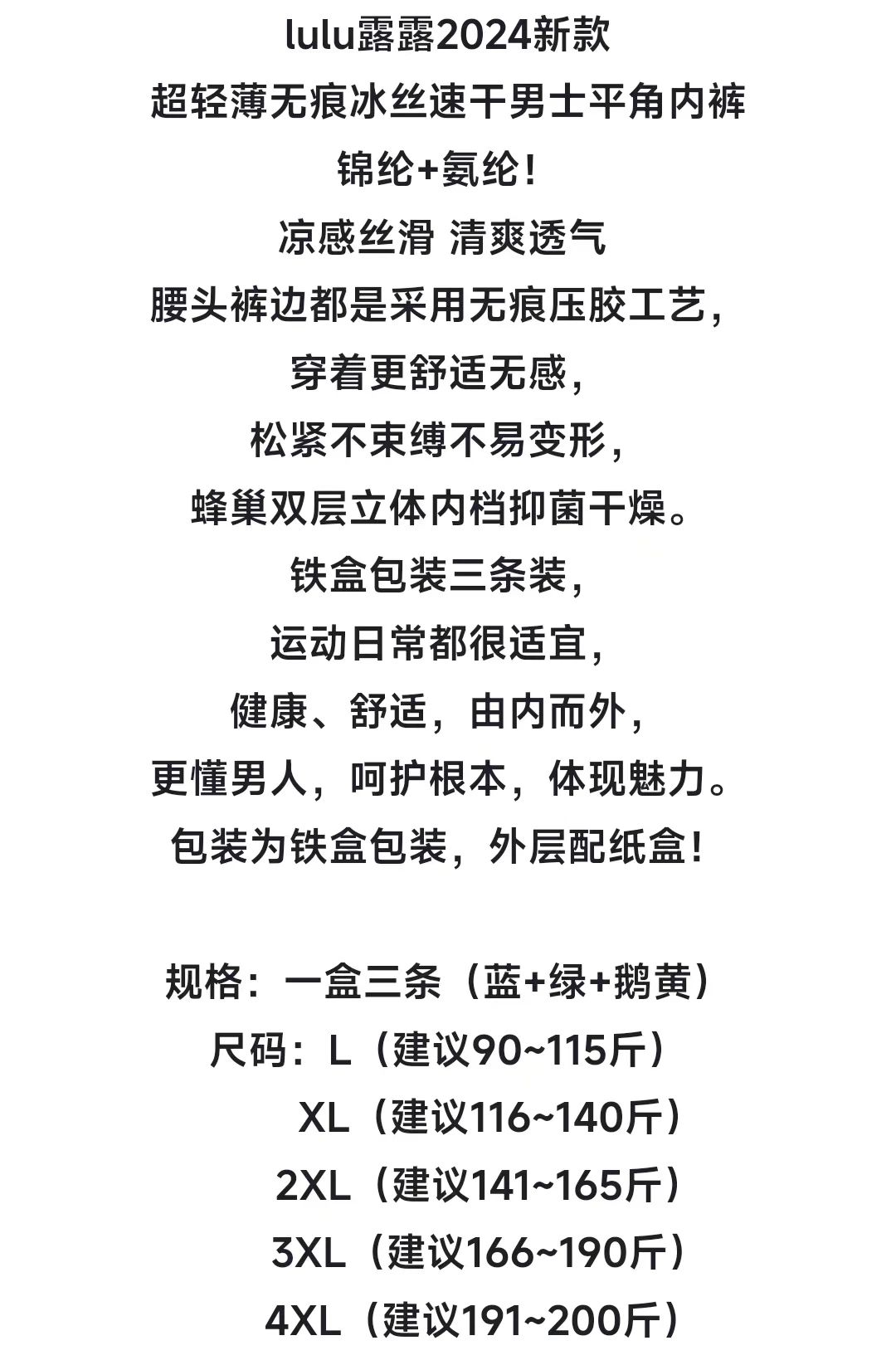 三条装露露超轻薄无痕冰丝速干男士平角内裤