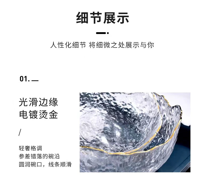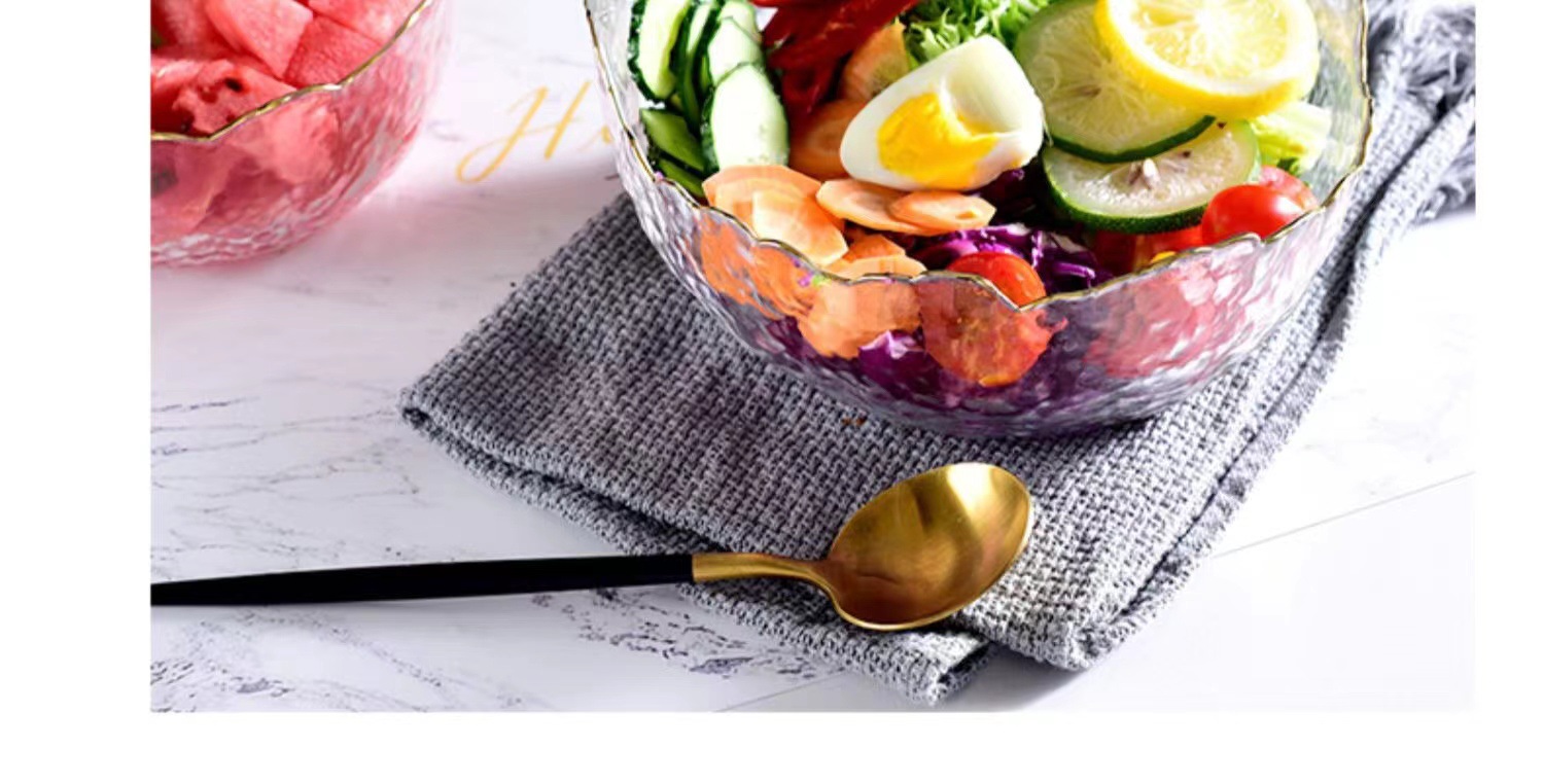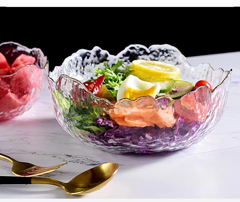 沙拉玻璃碗日式锤纹家用透明高颜值金边甜品碗水果沙拉碗玻璃碗餐具套装