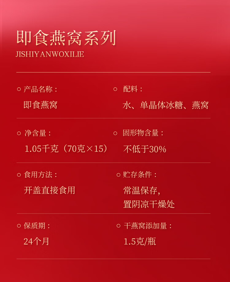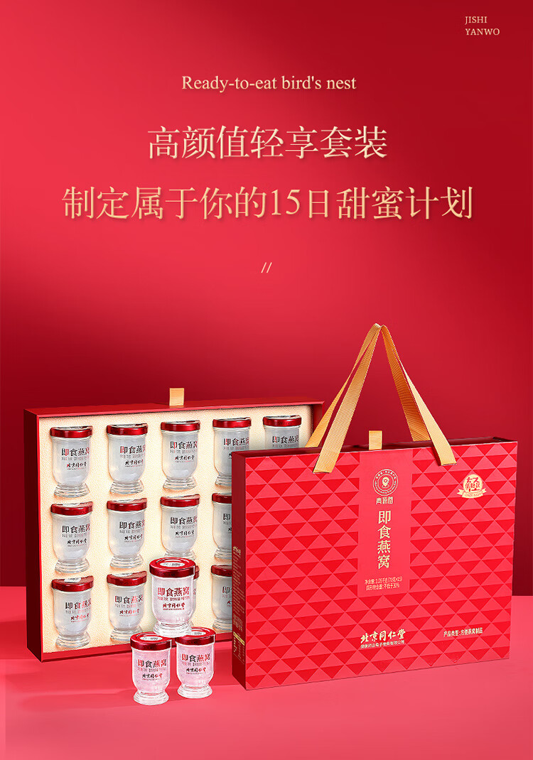 【正宗同仁堂品牌】北京同仁堂 青源堂 即食燕窝1.05kg(70*15瓶)低糖款 礼盒装 固形物含量≥30% SY