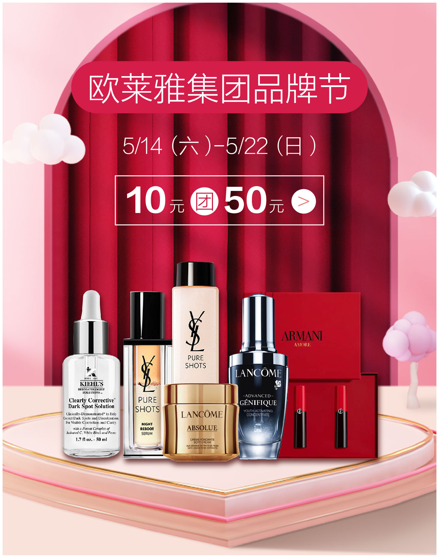 2.指定专柜(兰蔻、圣罗兰、阿玛尼、科颜氏)核销后,单笔消费立减50元,单柜单笔消费限使用一张,可与线下满减活动叠加,不与其他券类同享