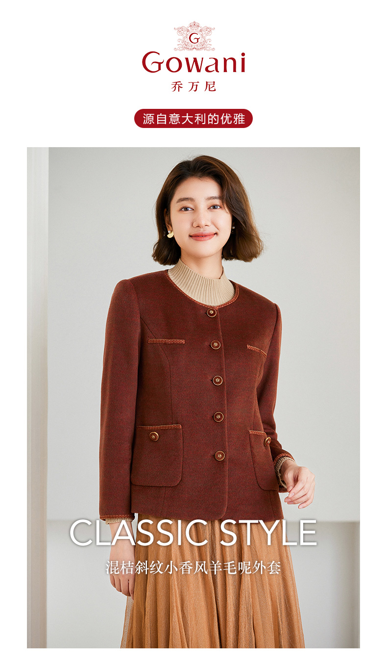 乔万尼100%绵羊毛短外套秋冬新款小香风ET4B863
