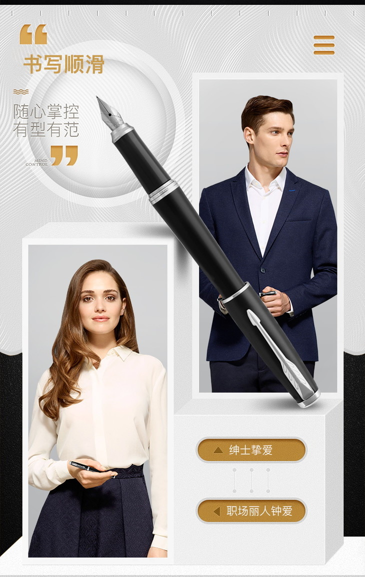 派克(PARKER)都市系列 磨砂黑白夹钢笔/墨水笔