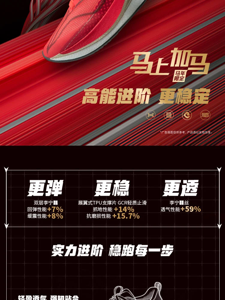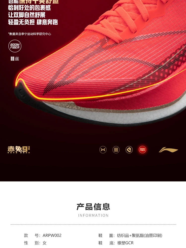 李宁赤兔9 PRO 马年女子䨻丝反光轻量高回弹竞速训练跑鞋ARPW002