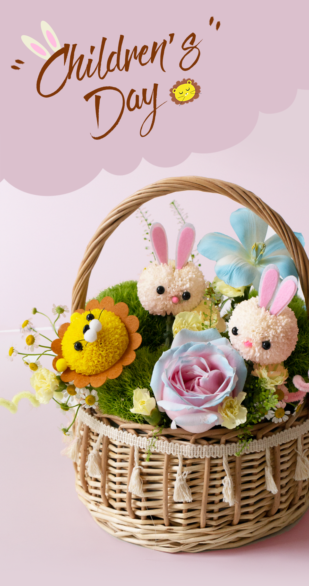 2024儿童节升级版「小狮子和大白兔」小花篮 商品图1
