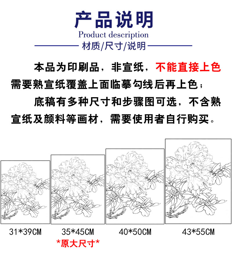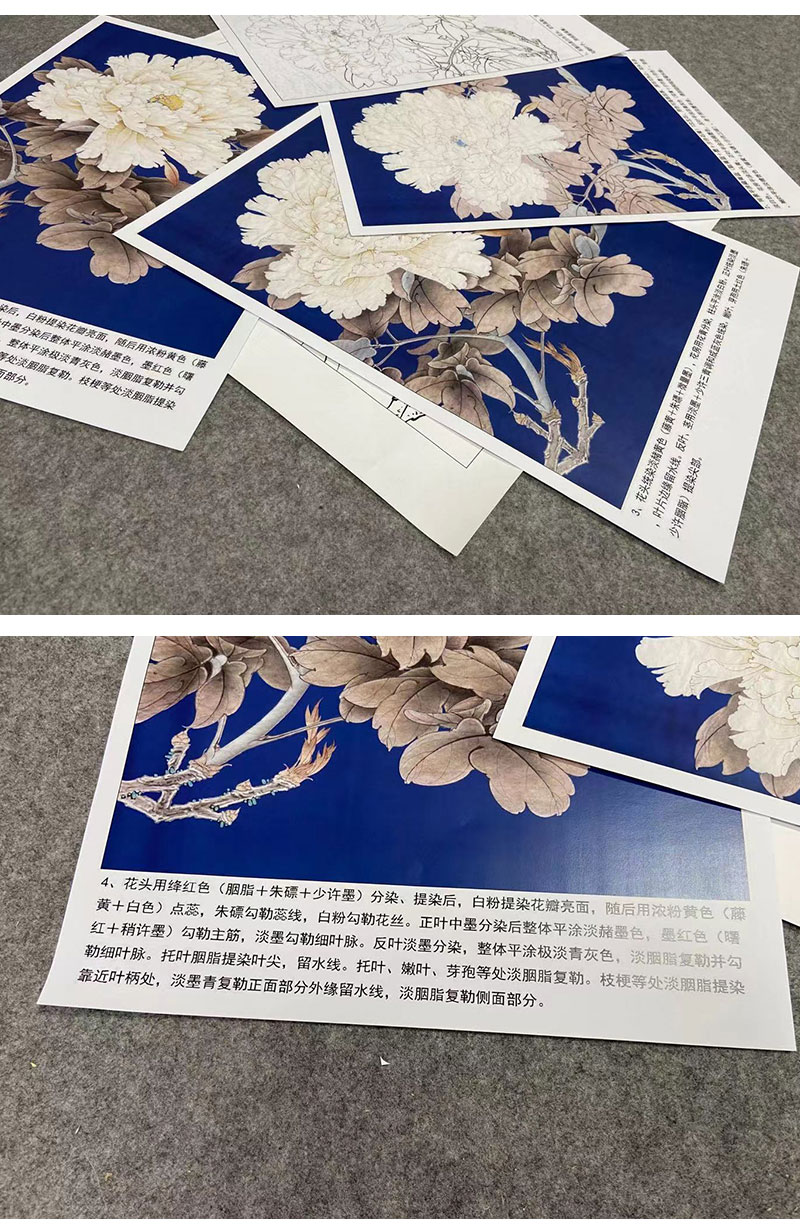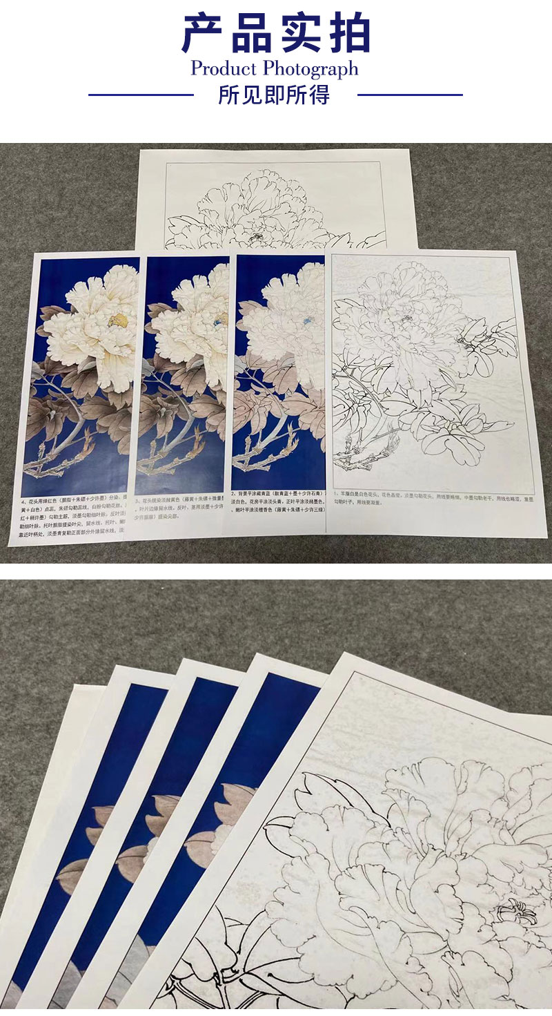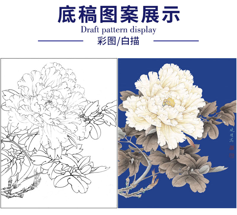 【有步骤、大彩图】李晓明工笔画白描底稿《羊脂白》牡丹花初学者临摹花鸟线稿KD42