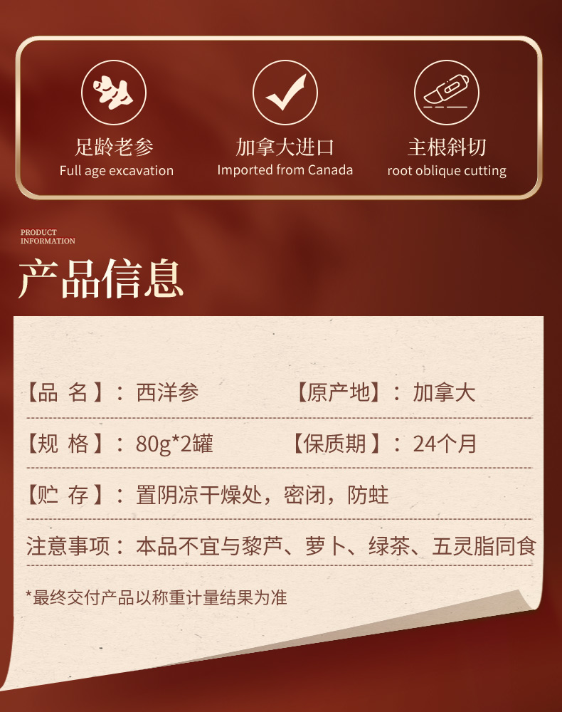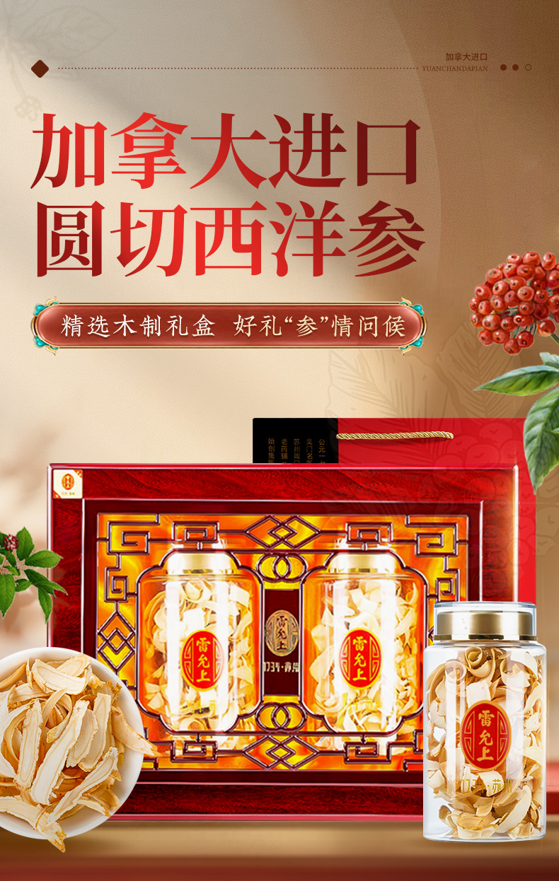 雷允上直营 | 雷允上西洋参刨片礼盒 160g(80g*2瓶)进口西洋参 精致木质礼盒