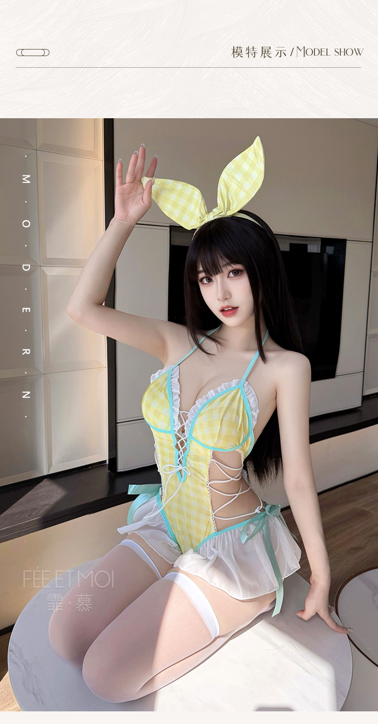 【情趣内衣】霏慕 清甜一夏露腰开裆连体衣ZY47