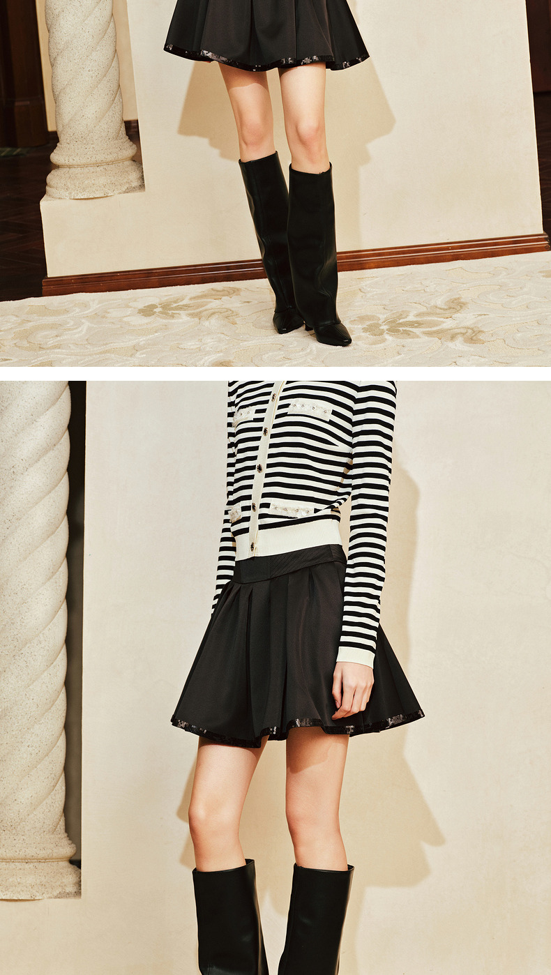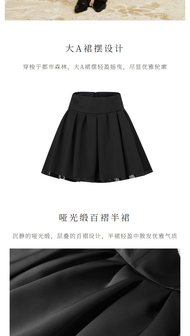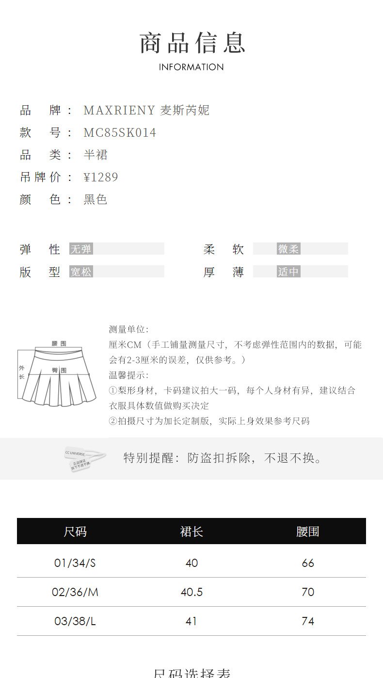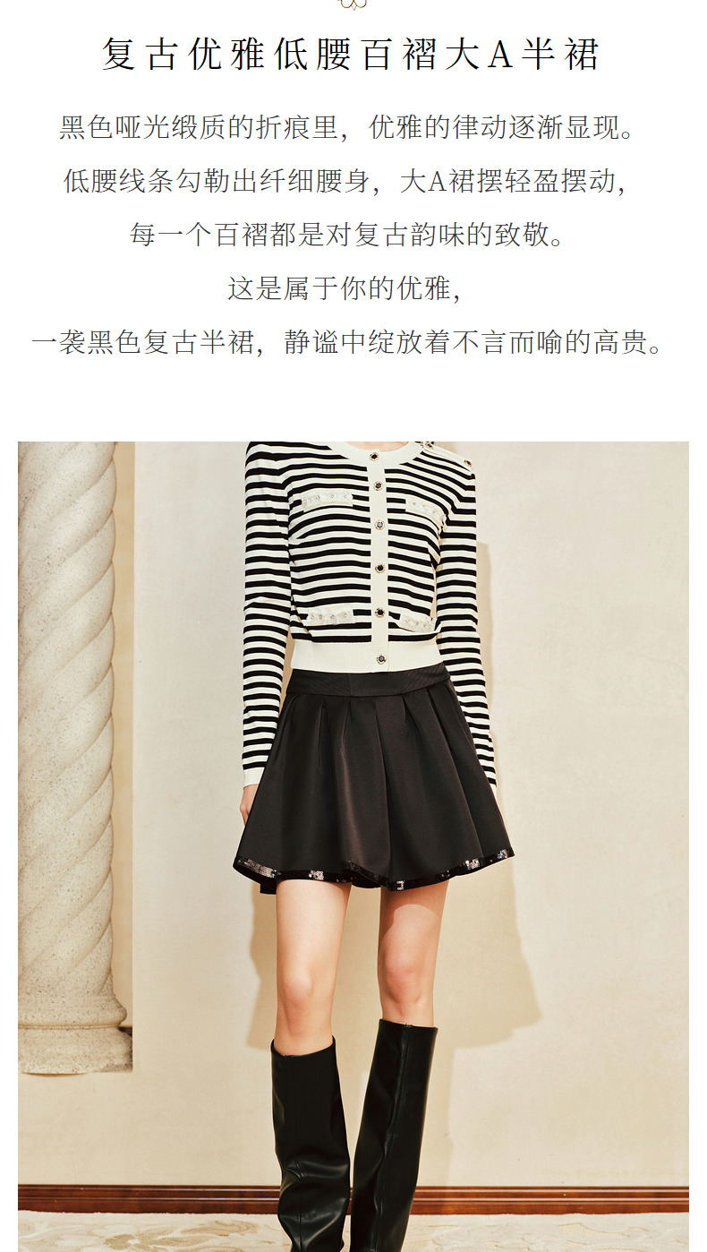 【商场同款-摩登女爵】MAXRIENY复古优雅低腰百褶A字半裙2024春款(货号:MC85SK014)