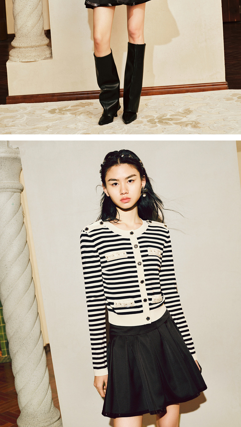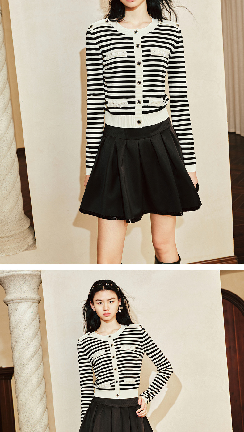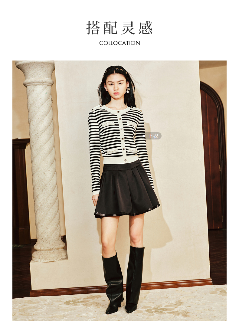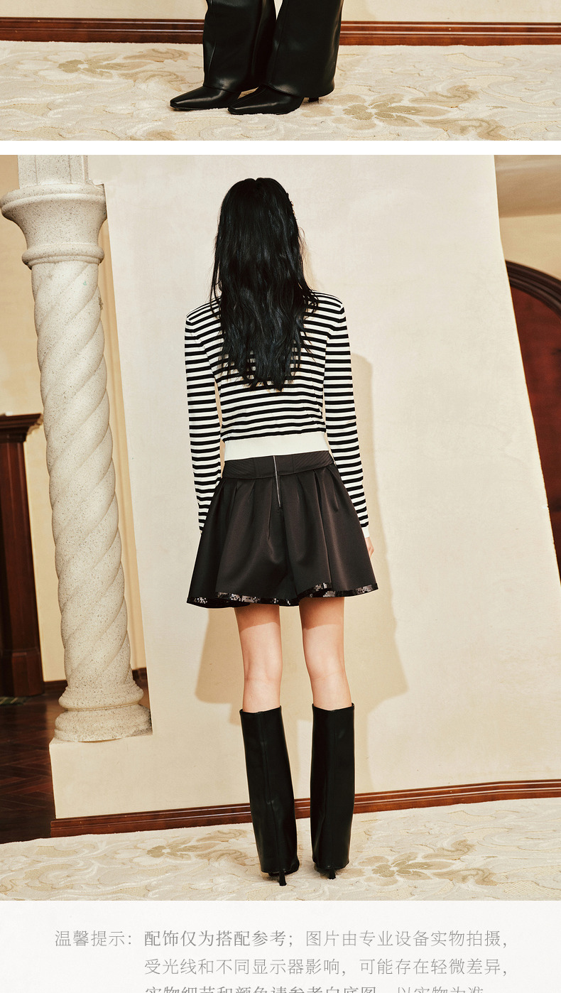 【商场同款-摩登女爵】MAXRIENY复古优雅低腰百褶A字半裙2024春款(货号:MC85SK014)