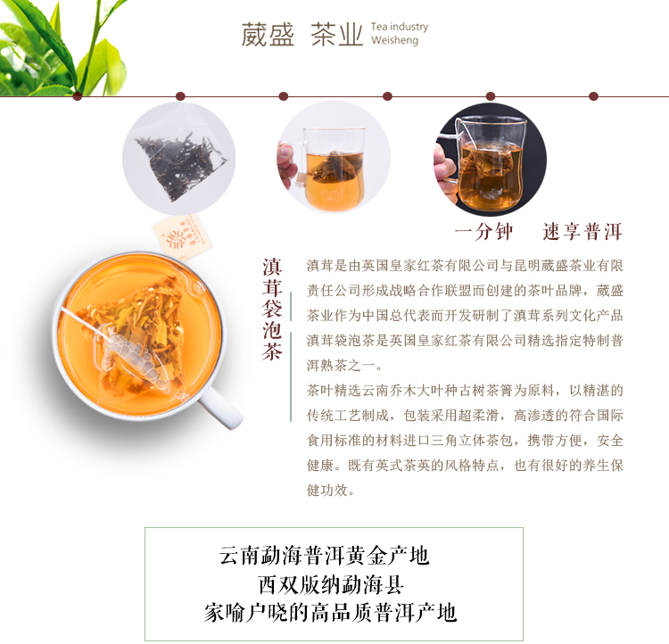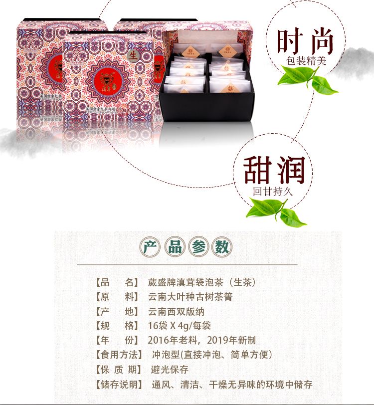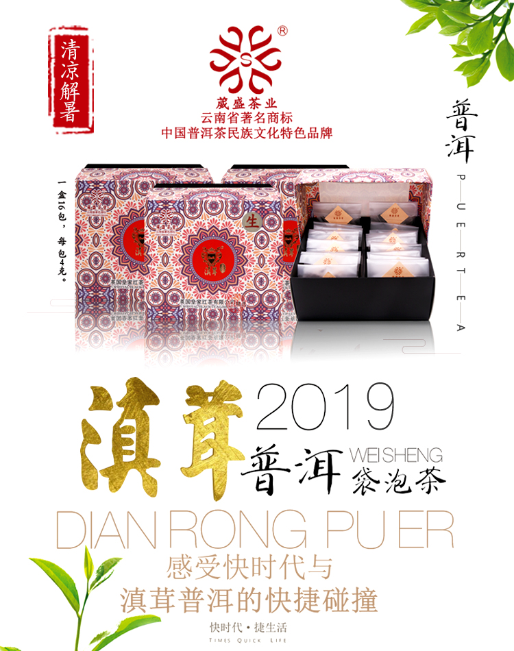 葳盛茶业2019年新款滇茸袋泡普洱生茶16袋/盒