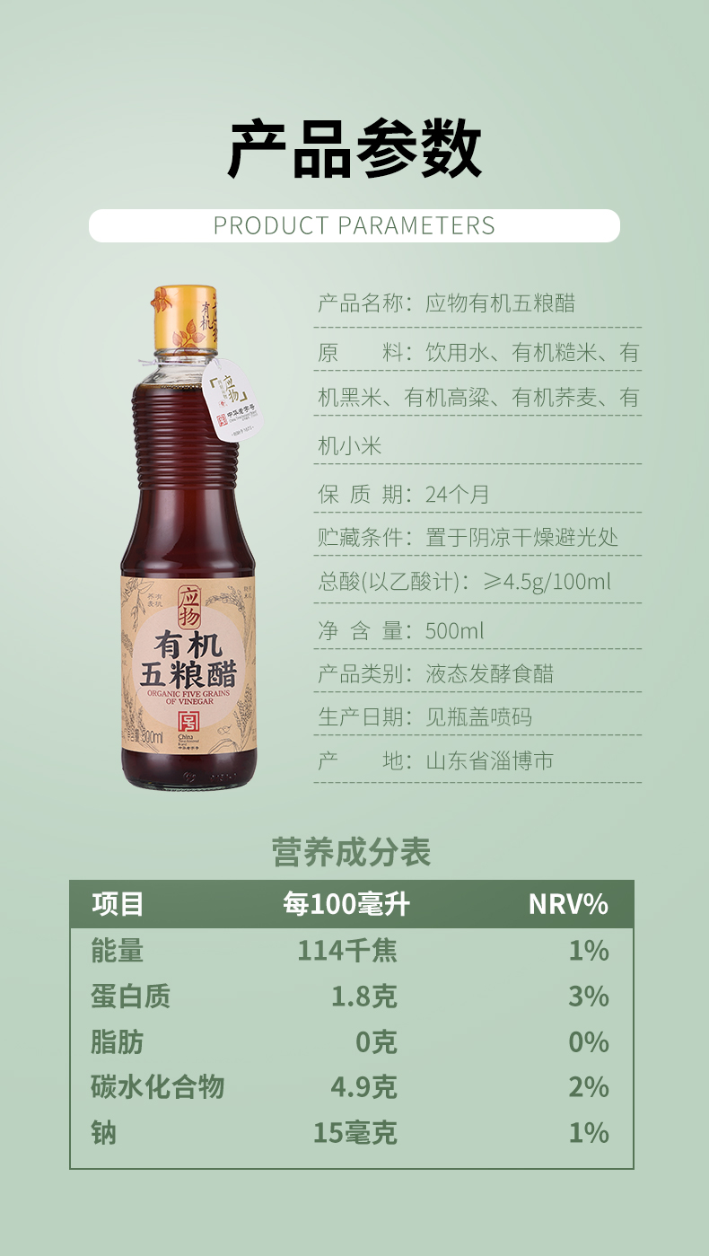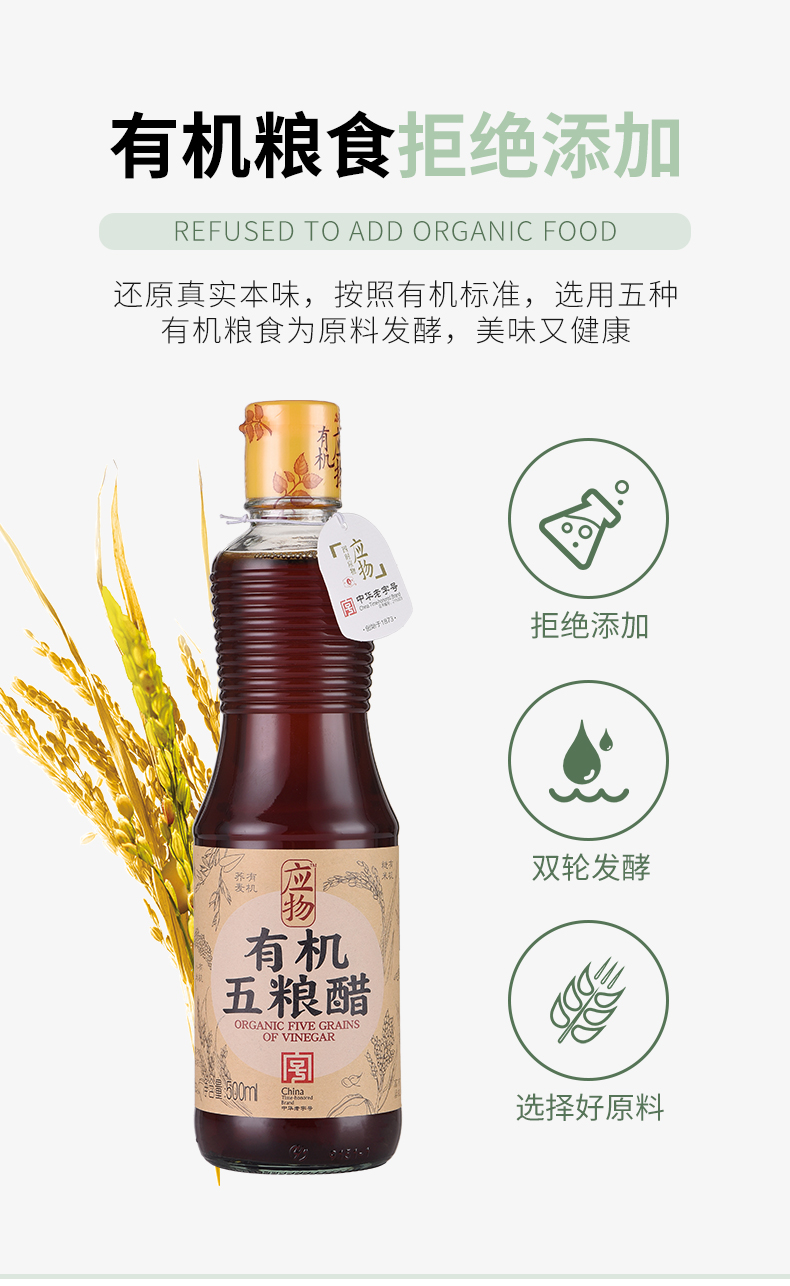 有机五粮醋 | 500ml/瓶 炒菜凉拌蘸料 烹饪调味 应物