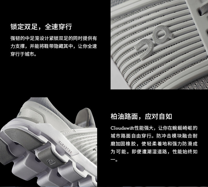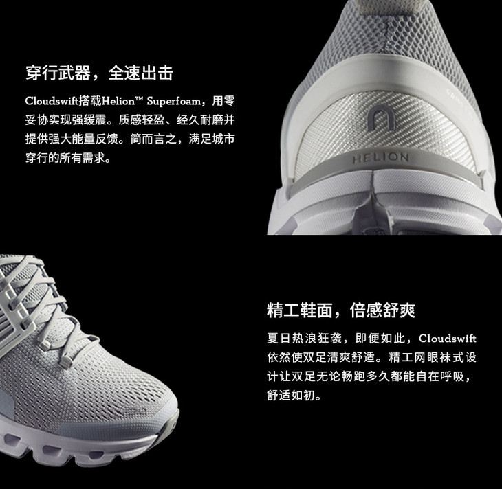OnRunning 耐久稳定女款轻量路跑鞋 Cloudswift跑马拉松比赛越野跑步耐力跑训练慢跑健身徒步运动