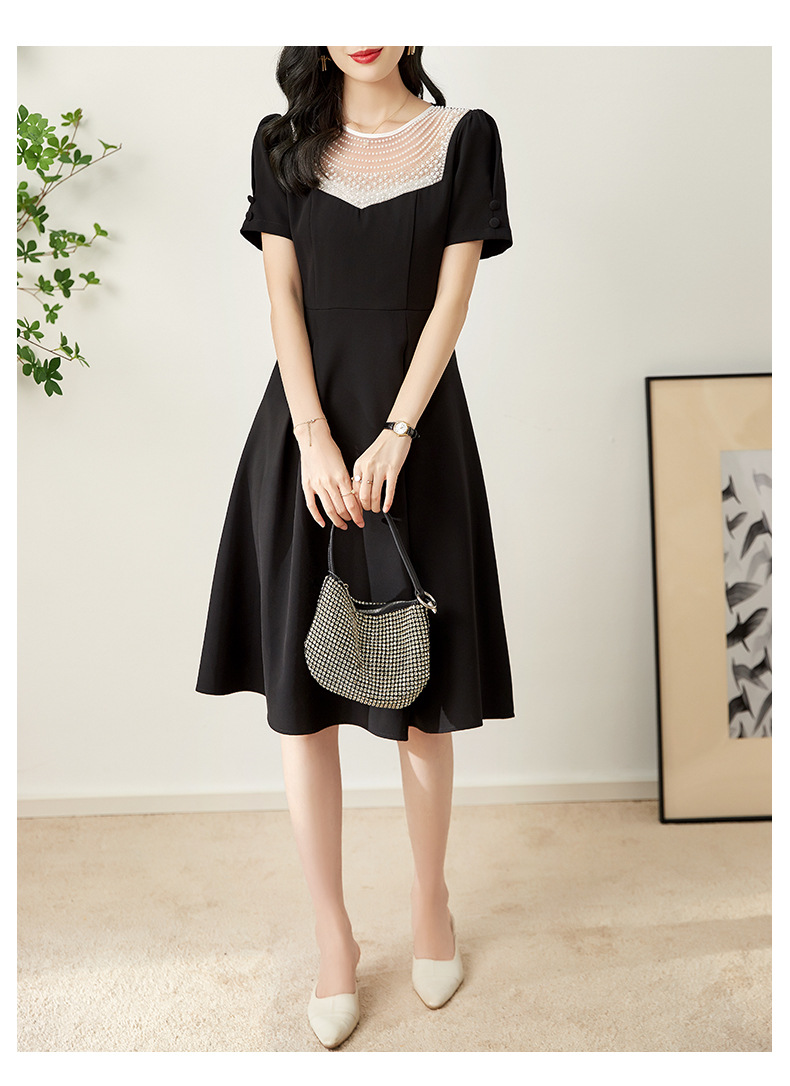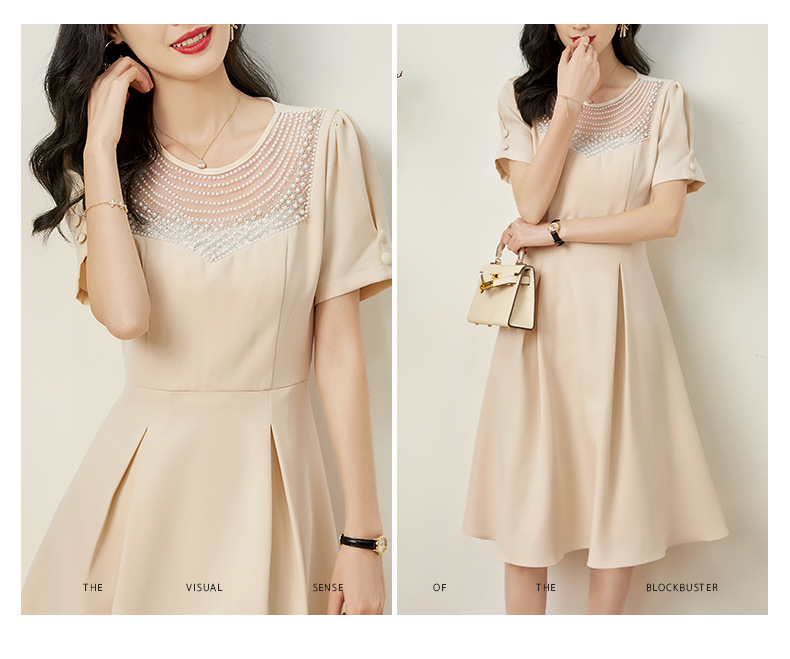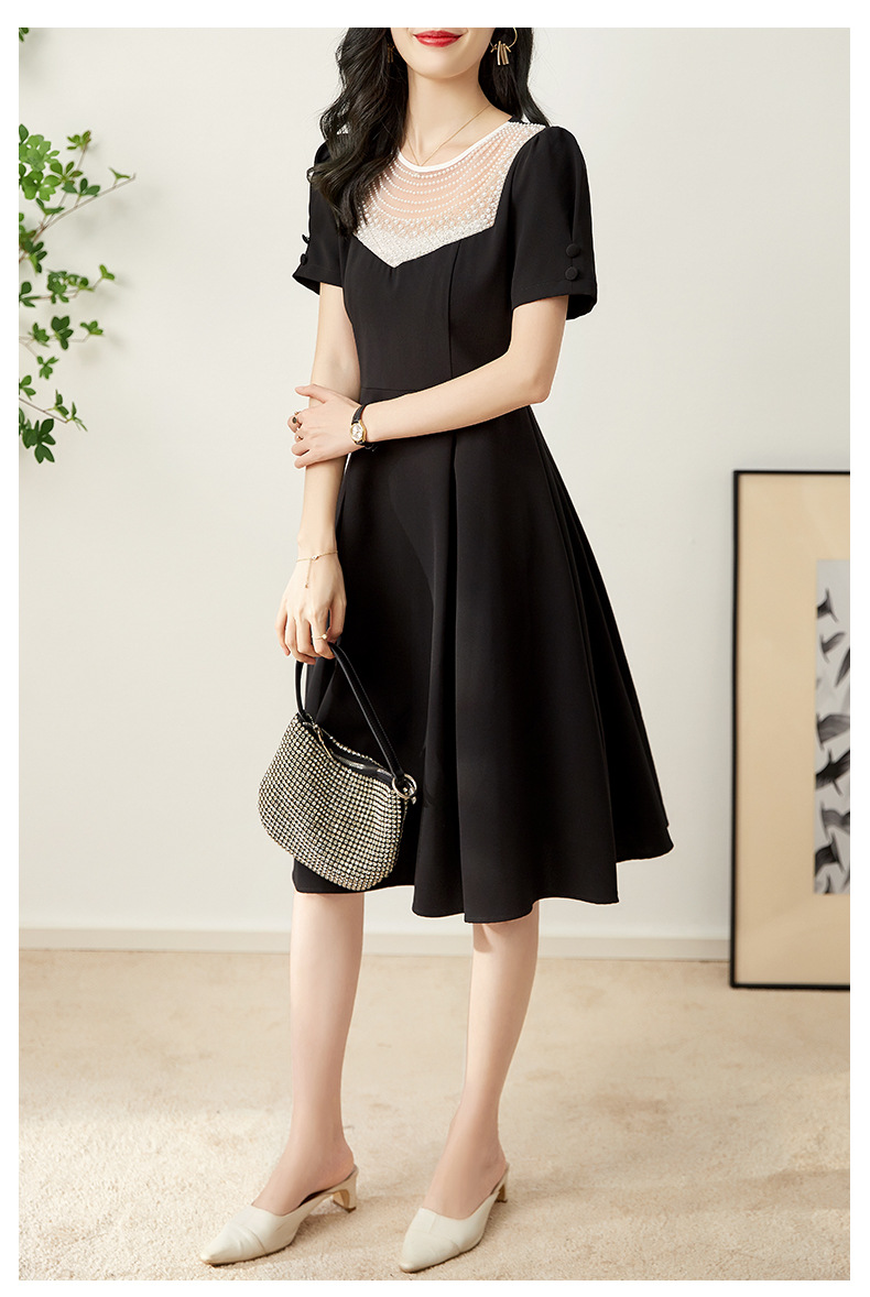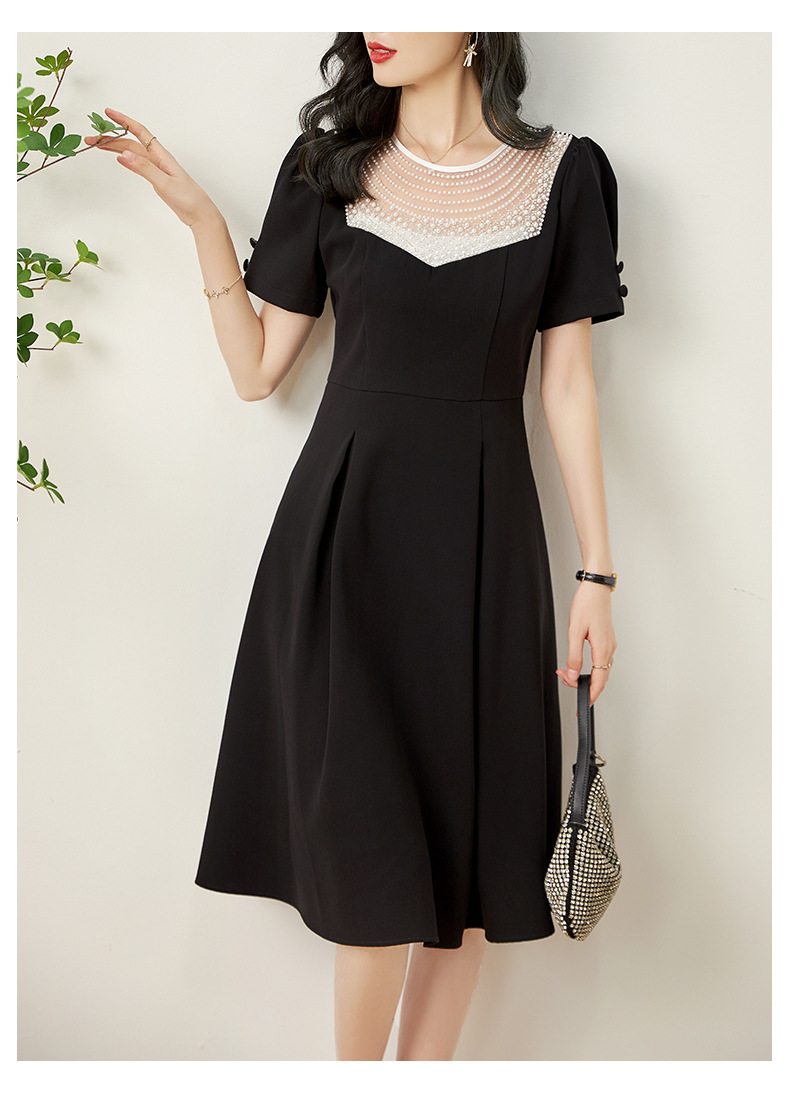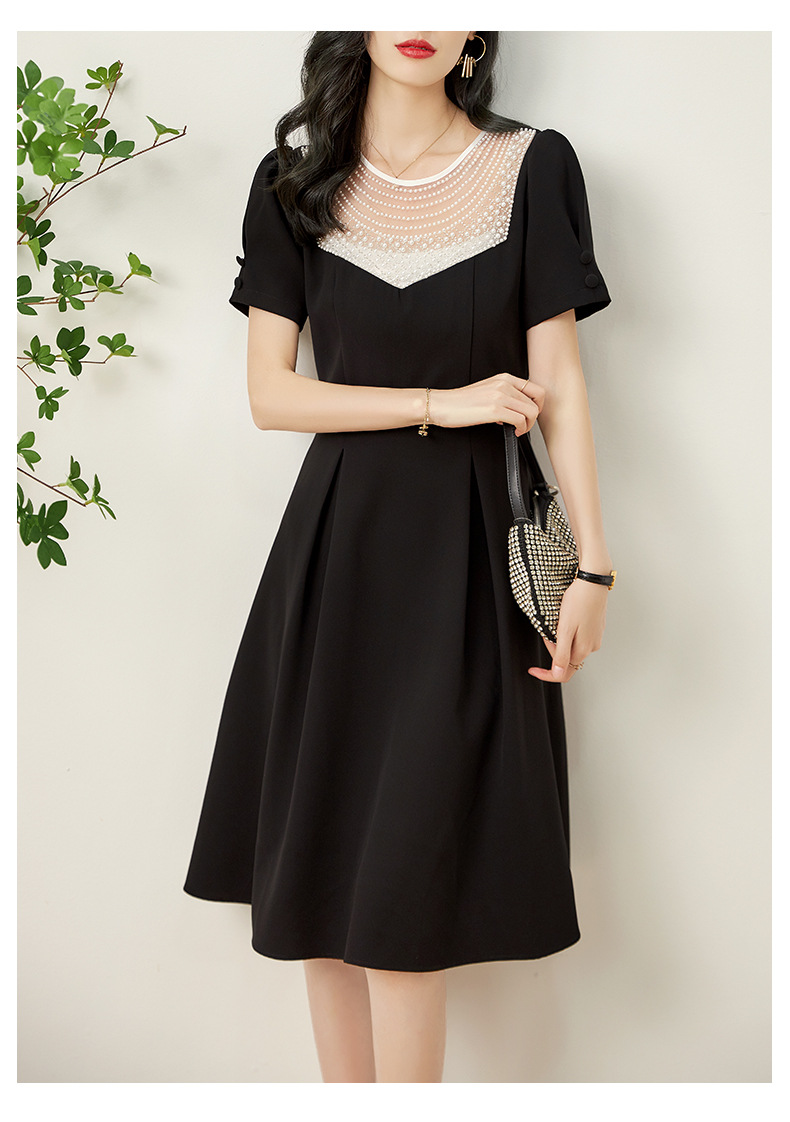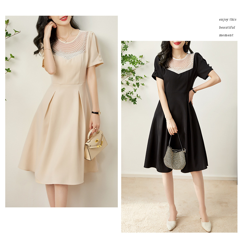 气质名媛,重工钉珠网纱拼接高阶设计感收腰显瘦A字连衣裙WLZD-2216304