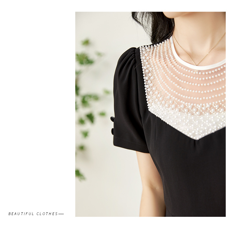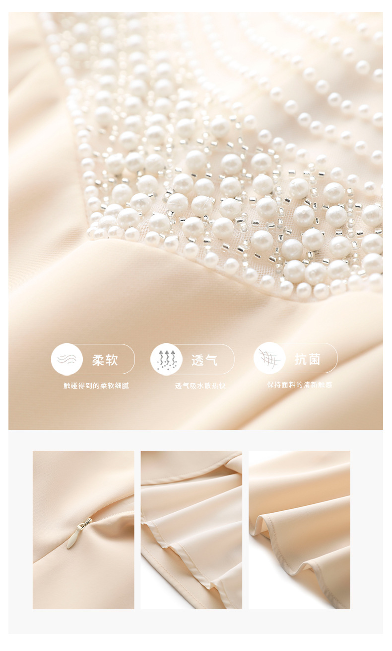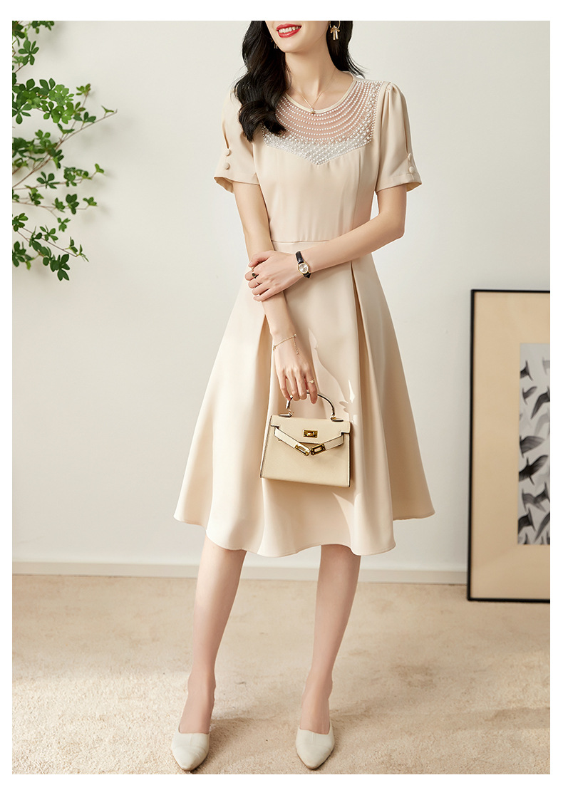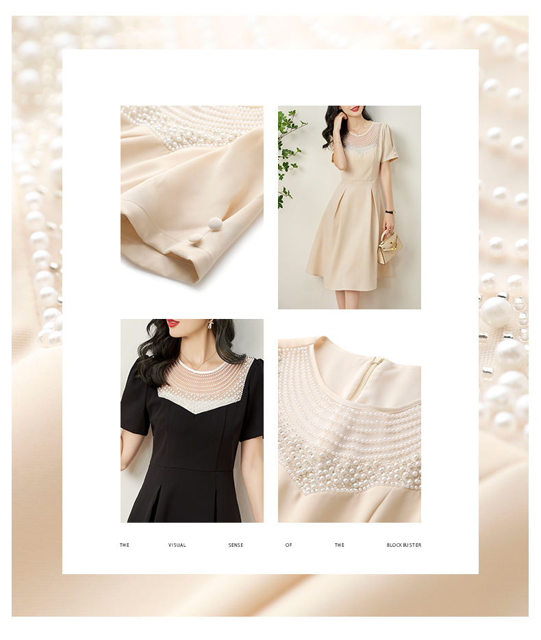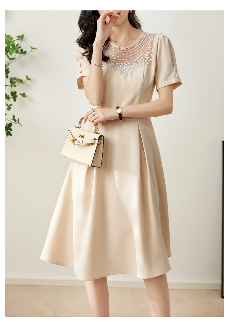 气质名媛,重工钉珠网纱拼接高阶设计感收腰显瘦A字连衣裙WLZD-2216304