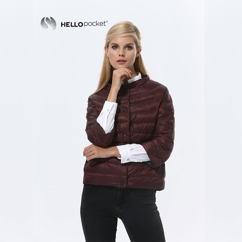 HPWL004女士时尚七分袖短款配针织保暖袖套鹅绒服