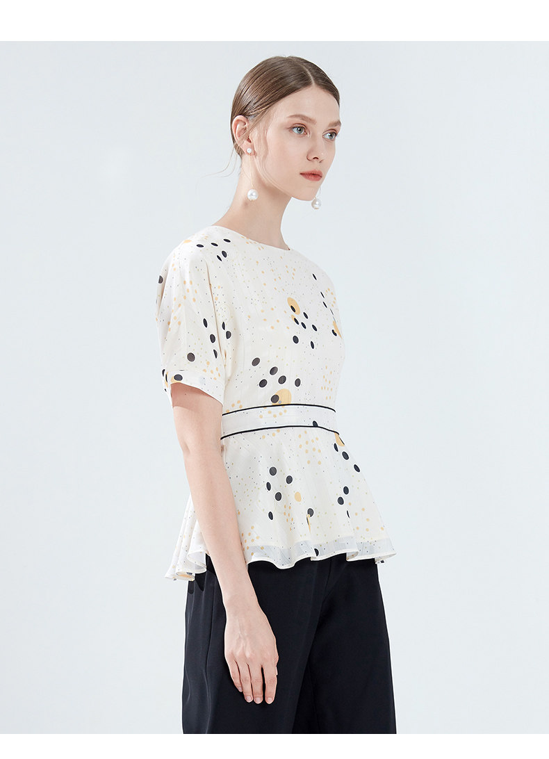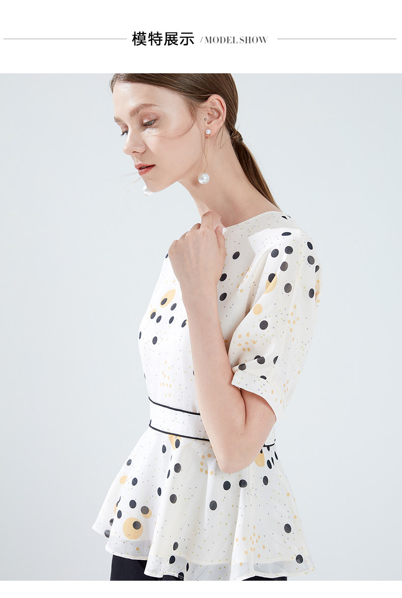 EITIE爱特爱女装夏季新款收腰显瘦短袖时尚波点小上衣女B1913252