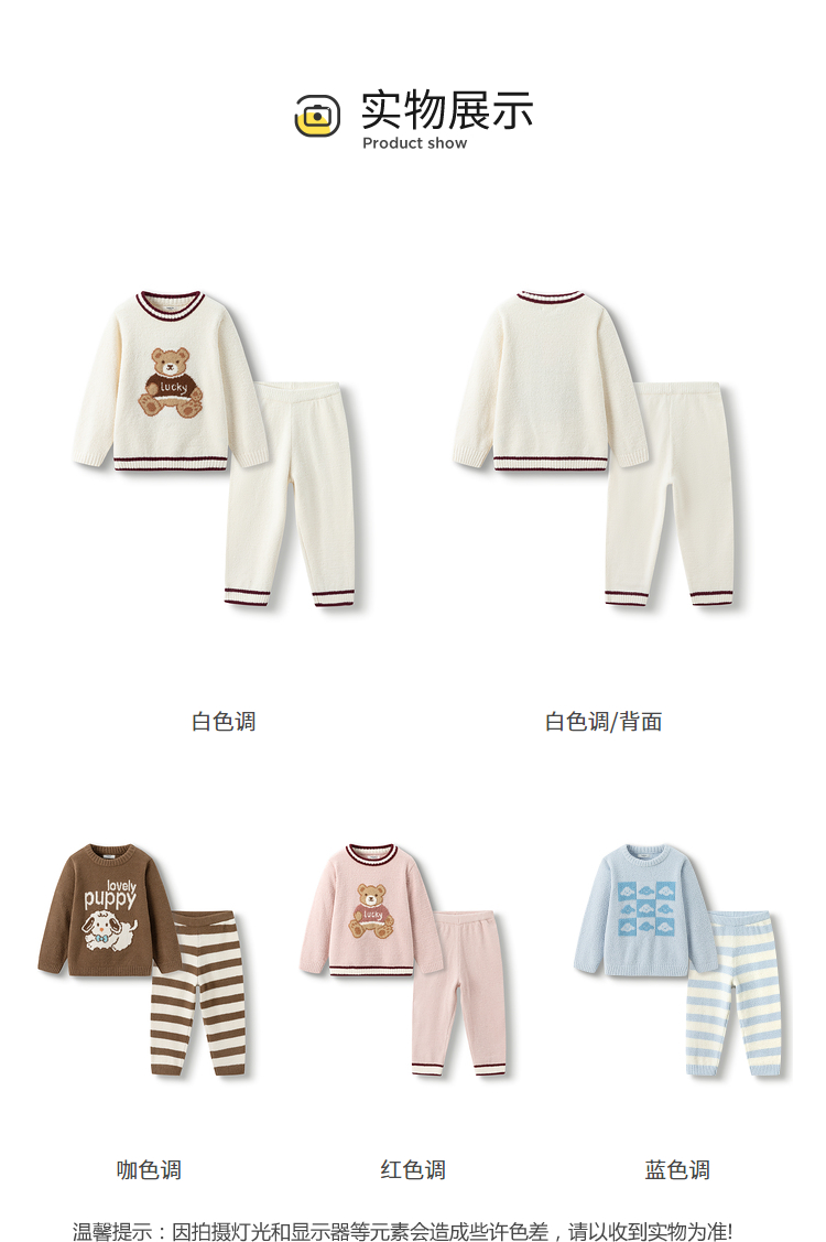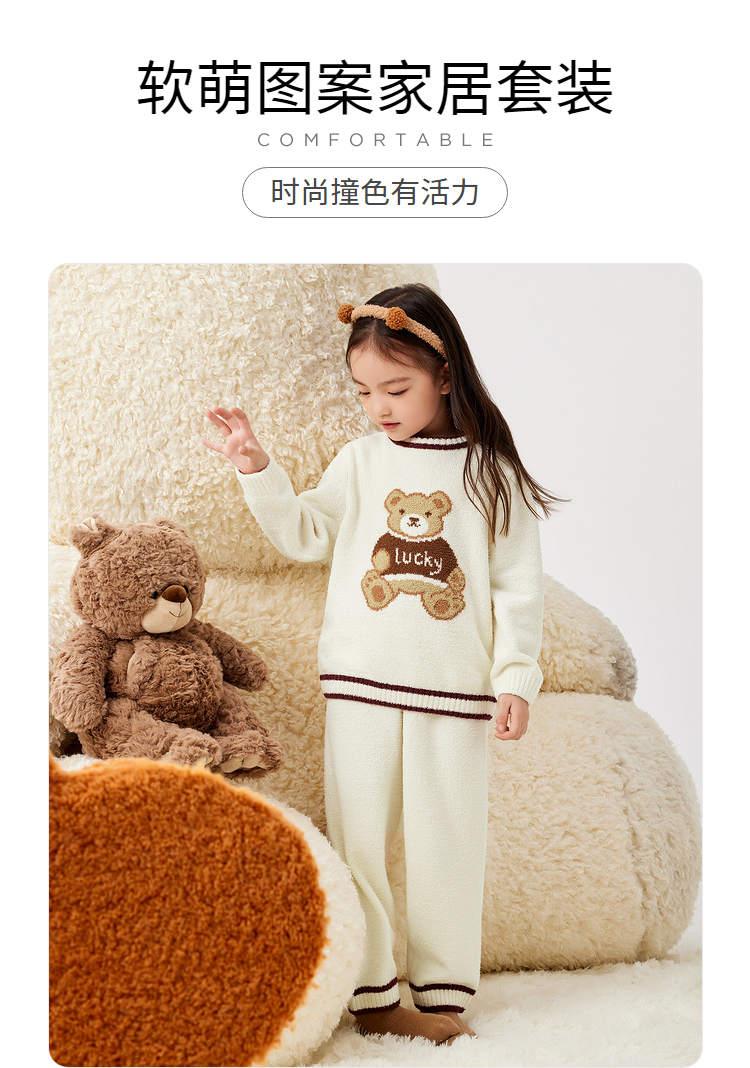 巴拉巴拉宝宝睡衣套装冬季加厚半边绒男女童家居服加绒保暖可外出