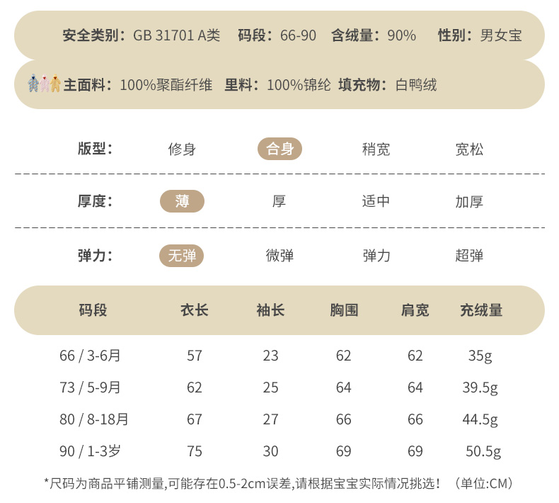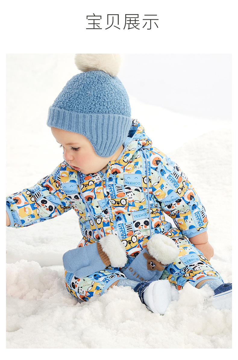 英氏婴儿连帽羽绒连体衣保暖哈衣轻薄羽绒服超韧绒