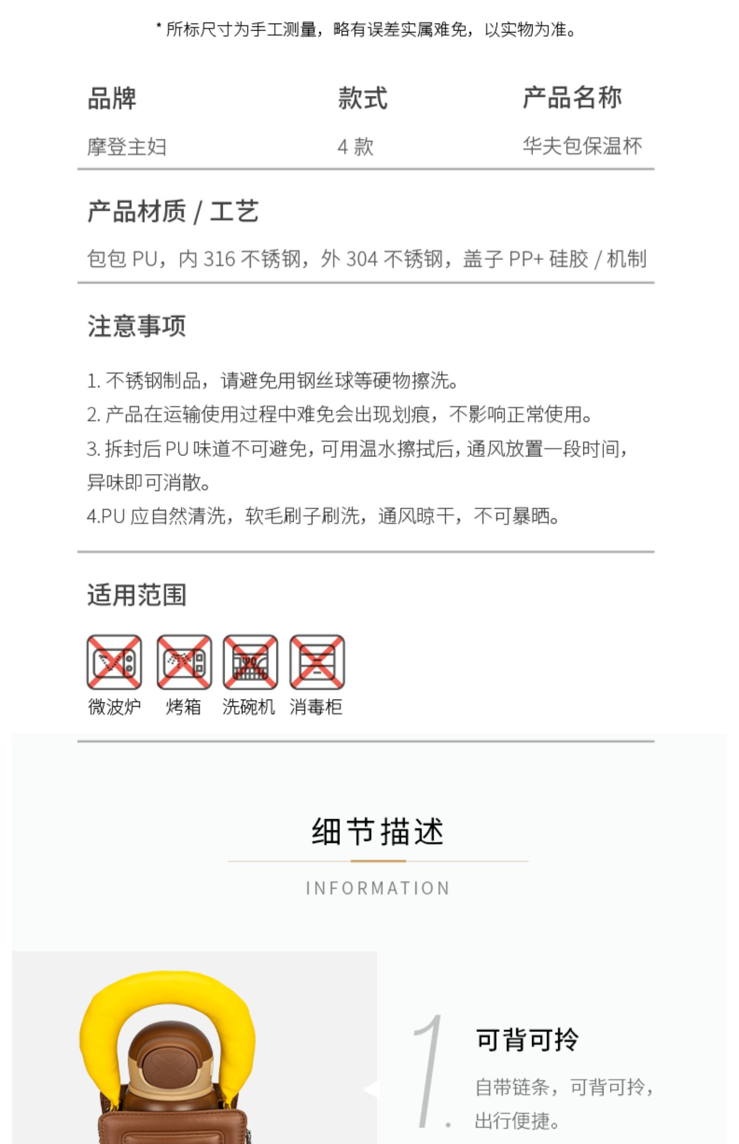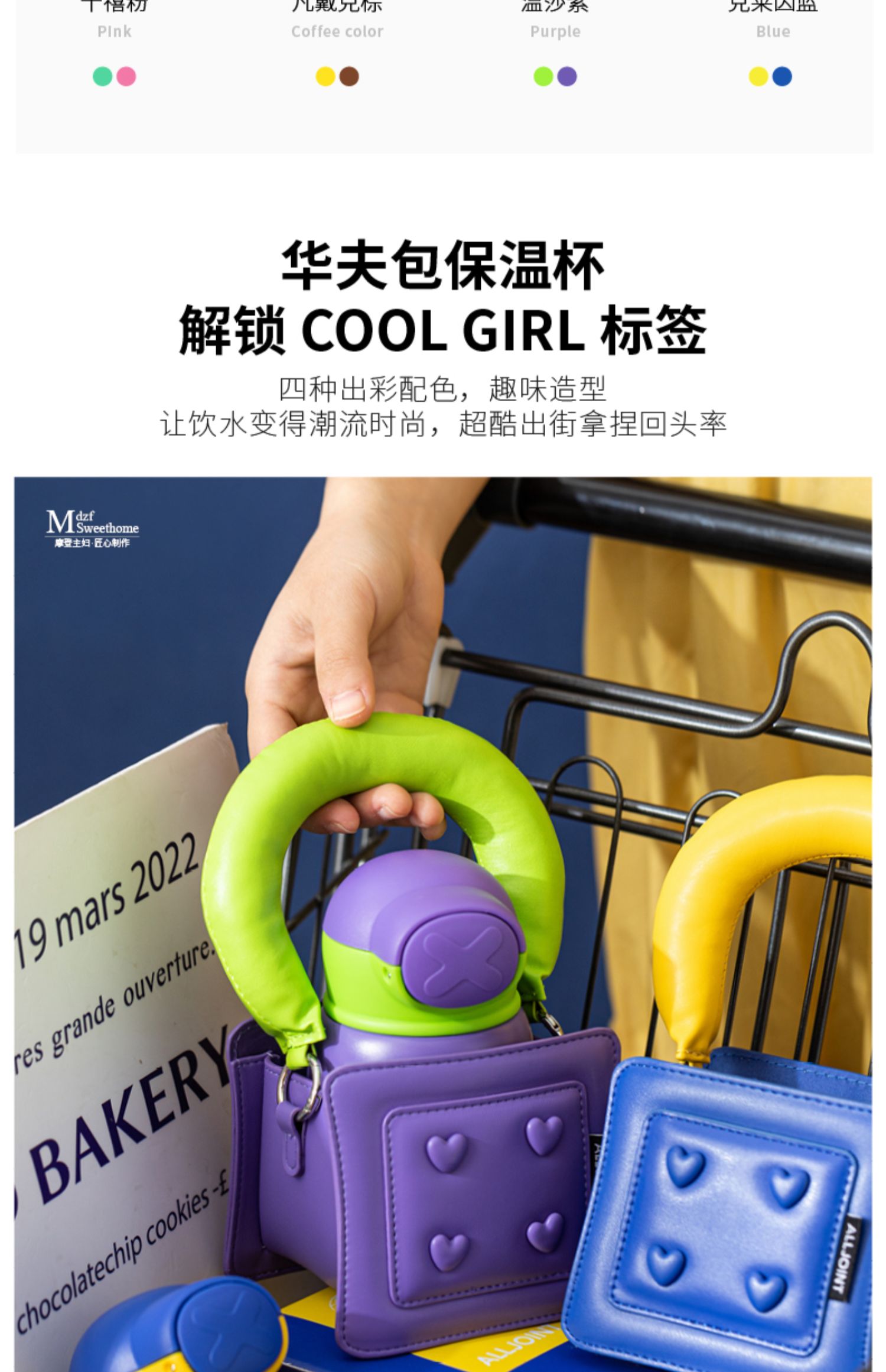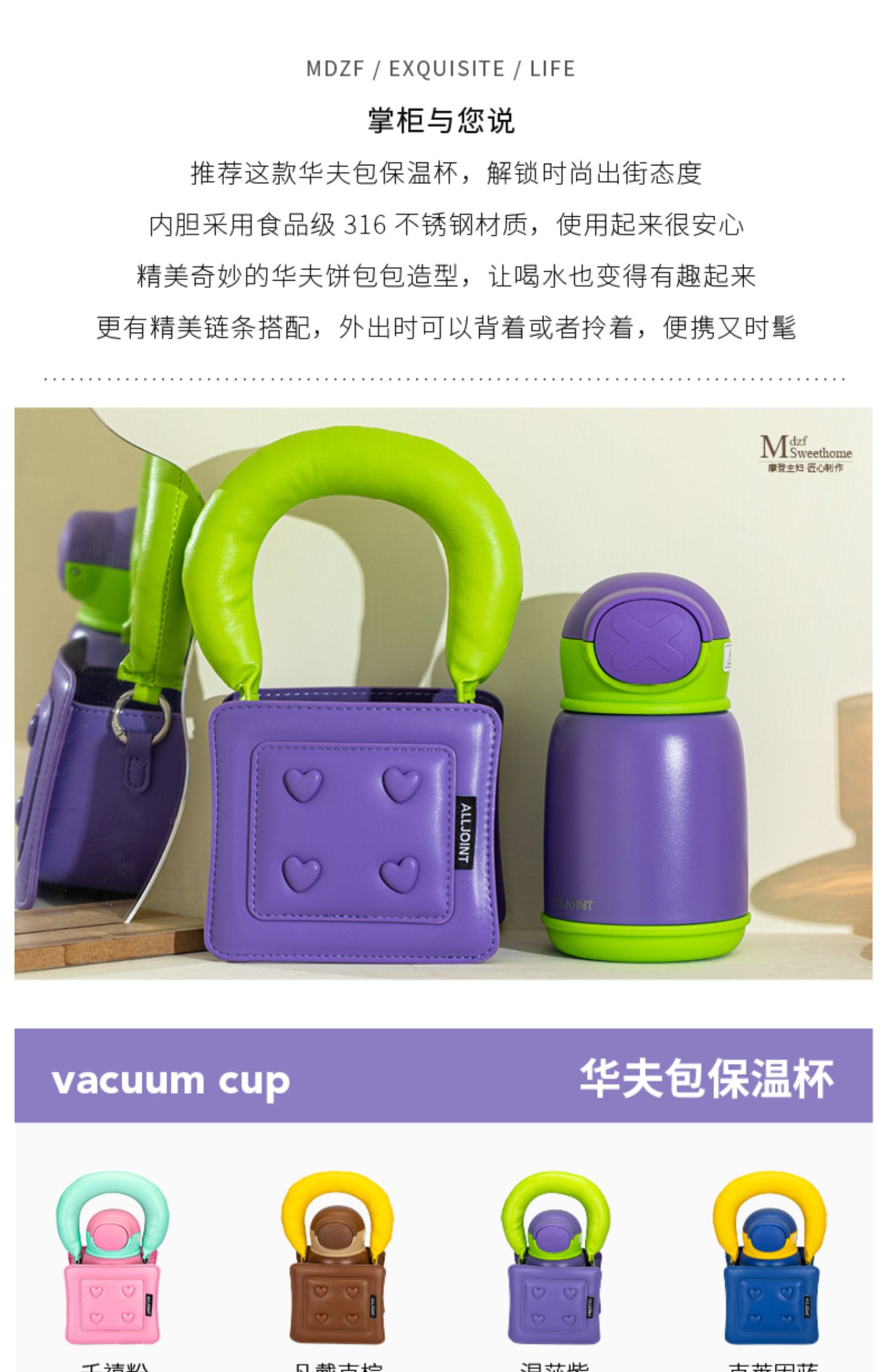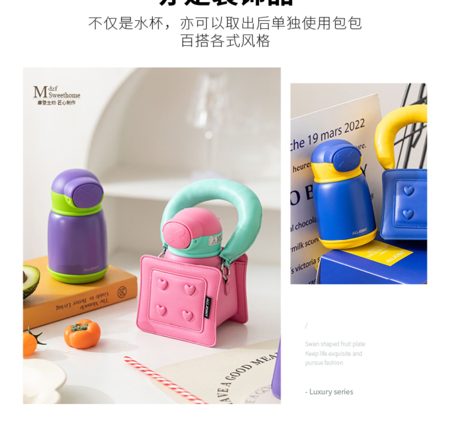 摩登主妇316不锈钢保温杯女生高颜值水杯便携式新款包包吸管杯子