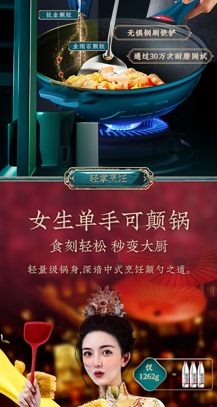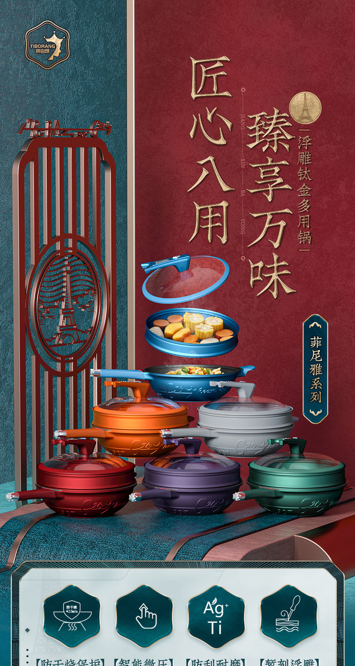 帝伯朗 菲尼雅浮雕钛钻多用不粘锅 32CM 全炉灶通用