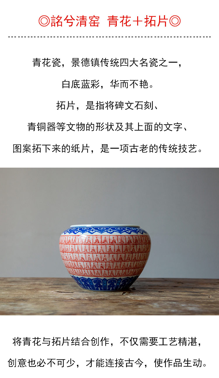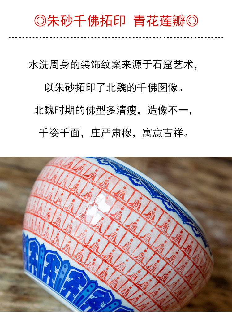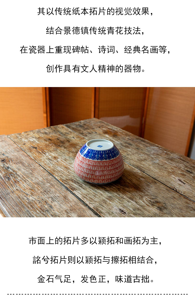 茶香记 千佛全红拓印大水洗 詺兮清窑 青花拓片 明艳雅致 赏用皆宜