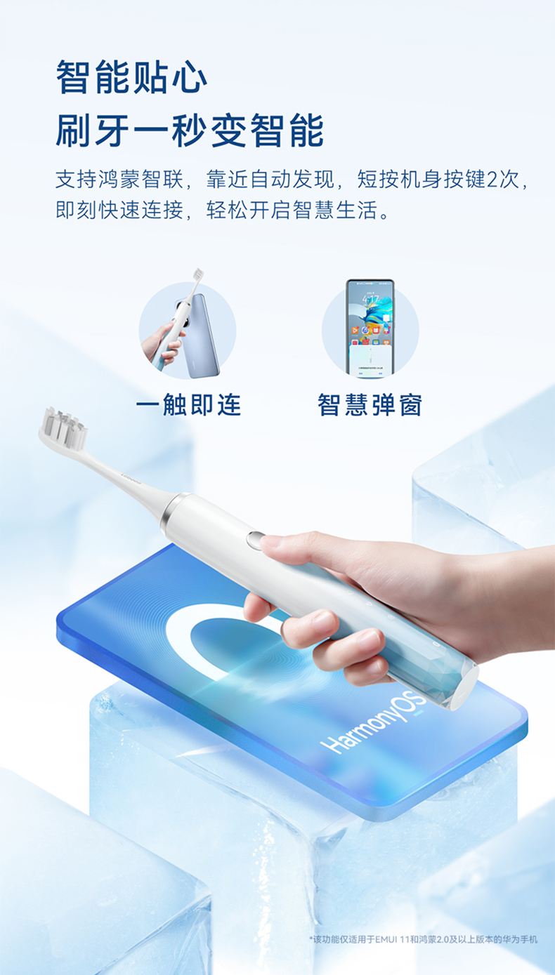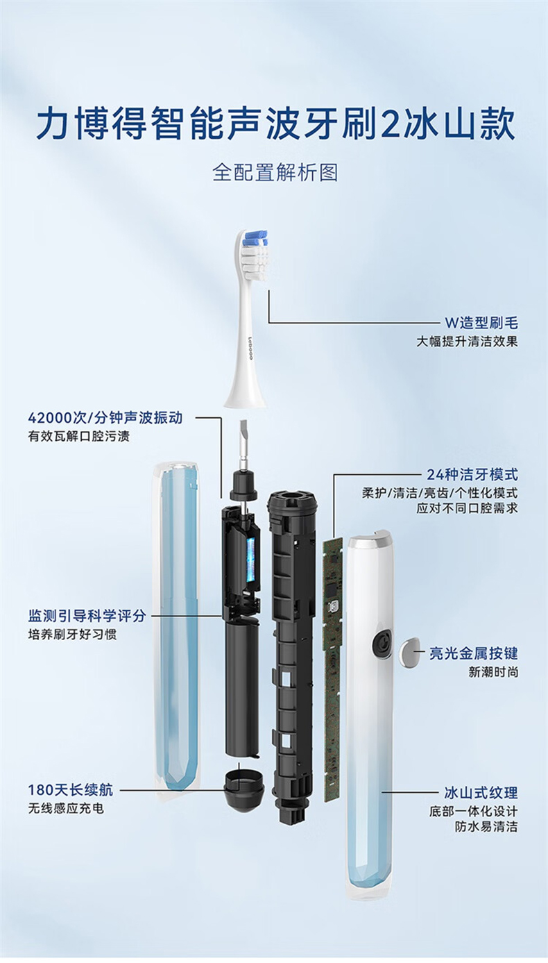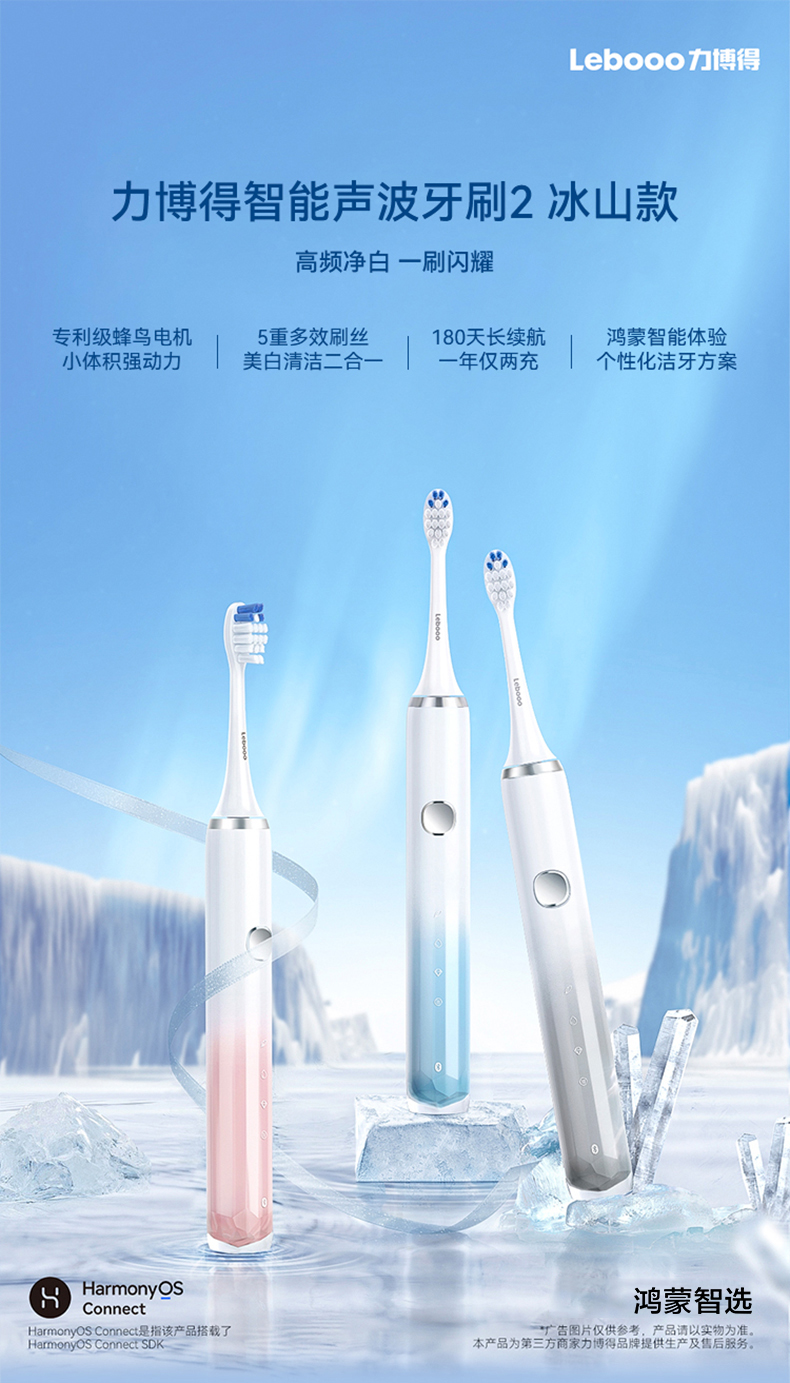 鸿蒙智选 力博得电动牙刷 智能声波牙刷2 冰山款【下单送2支刷头,到手4支)