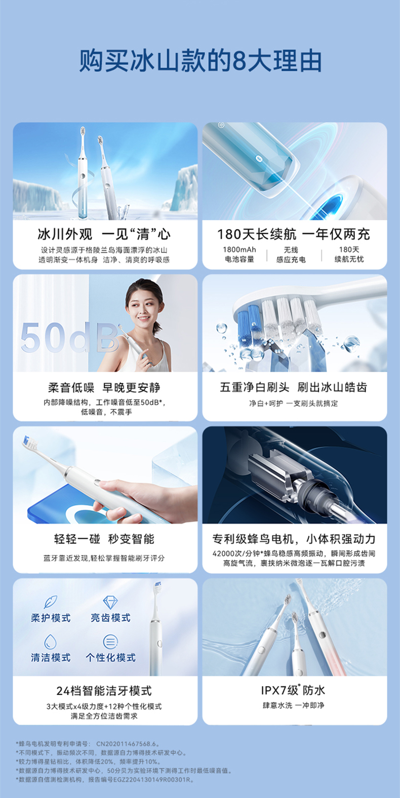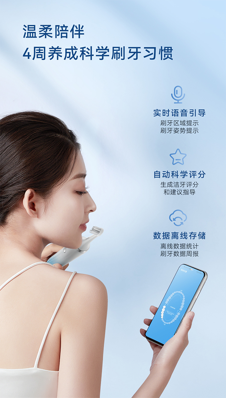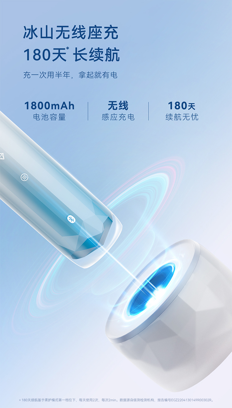 鸿蒙智选 力博得电动牙刷 智能声波牙刷2 冰山款【下单送2支刷头,到手4支)