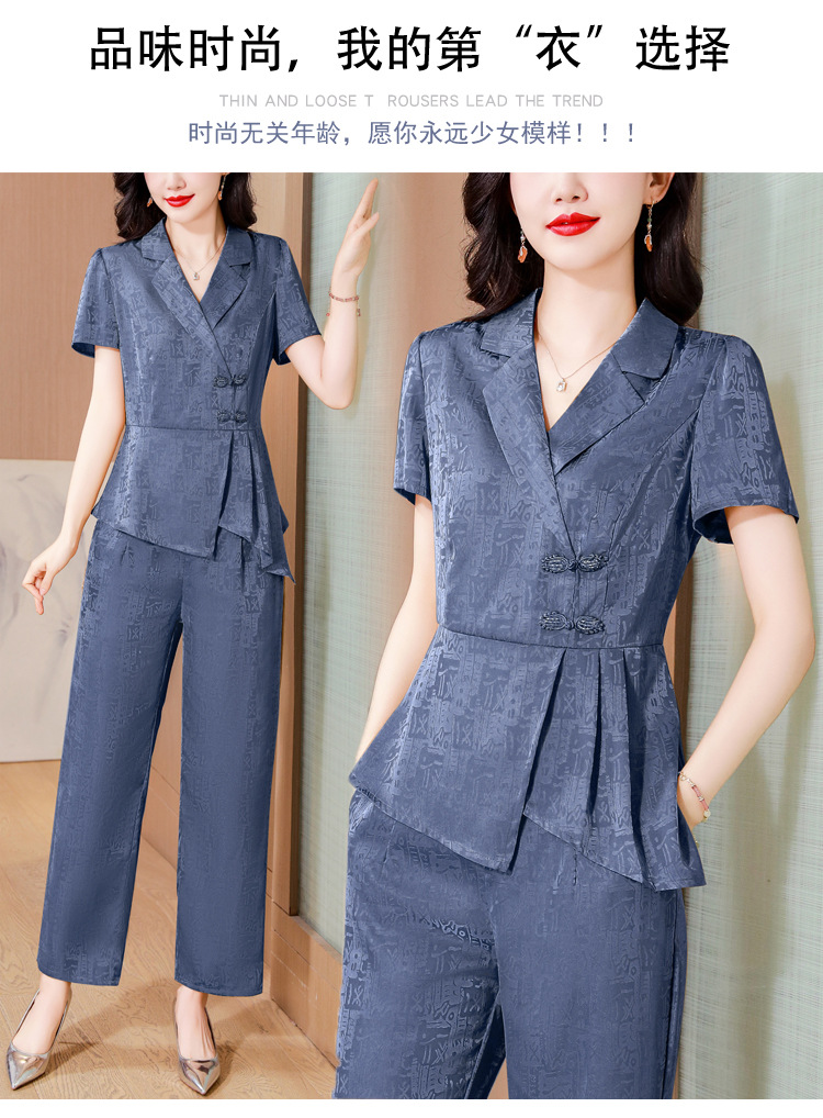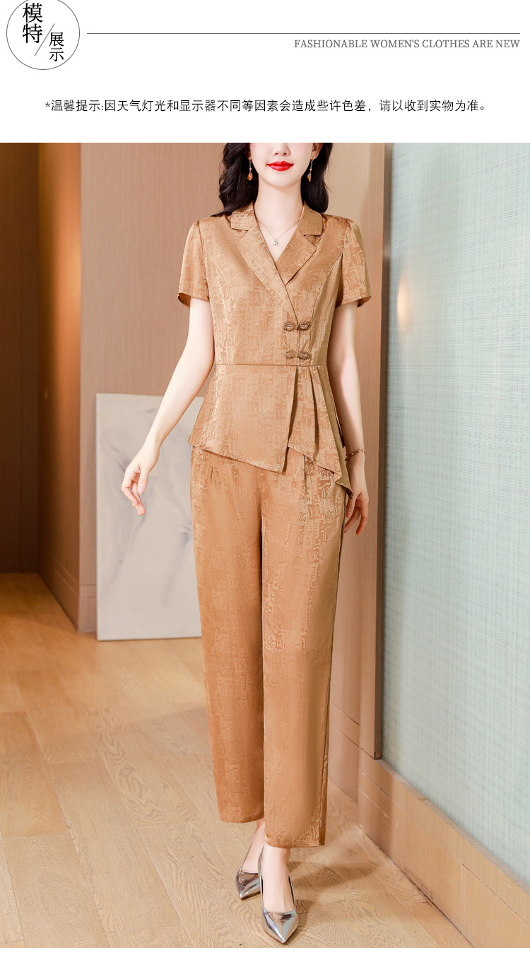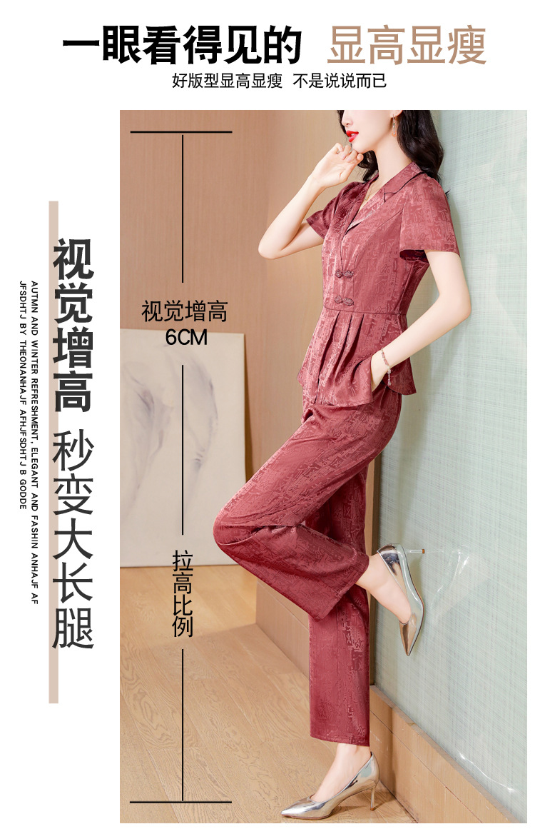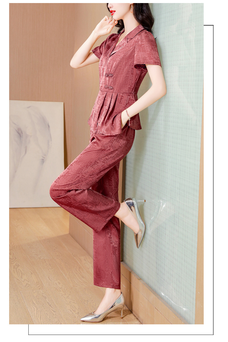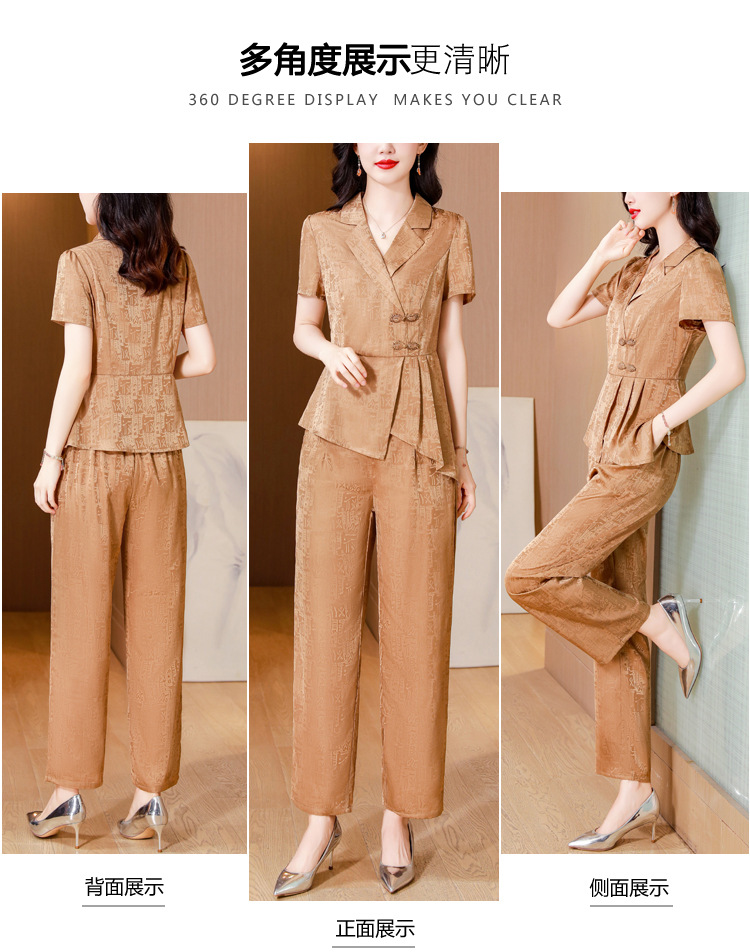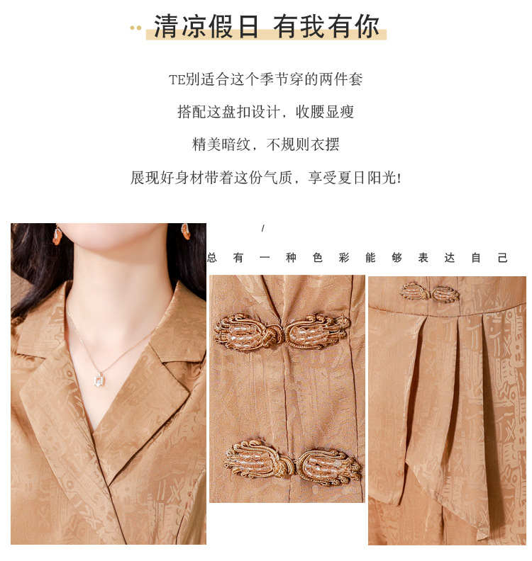 AHMqyfs8917 复古气质西装领短袖上衣阔腿裤两件套女2024夏季新款时尚古提花套装 商品图2