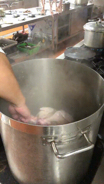 方野之前出的酱油鸡和葱油鸡,由于冷冻后再解冻加热,由于冷冻后失水多少都会折损它原本鲜嫩多汁的口感,于是一直都想出一款干一些的鸡。咸香鸡是在曾师傅之前烧腊店的配方上,根据农场鸡矫健的特点,做的调整。用盐和沙姜粉调好盐卤汁,当天宰杀的180天的清远鸡,浸入盐卤汁里半个小时左右,然后捞起风干。