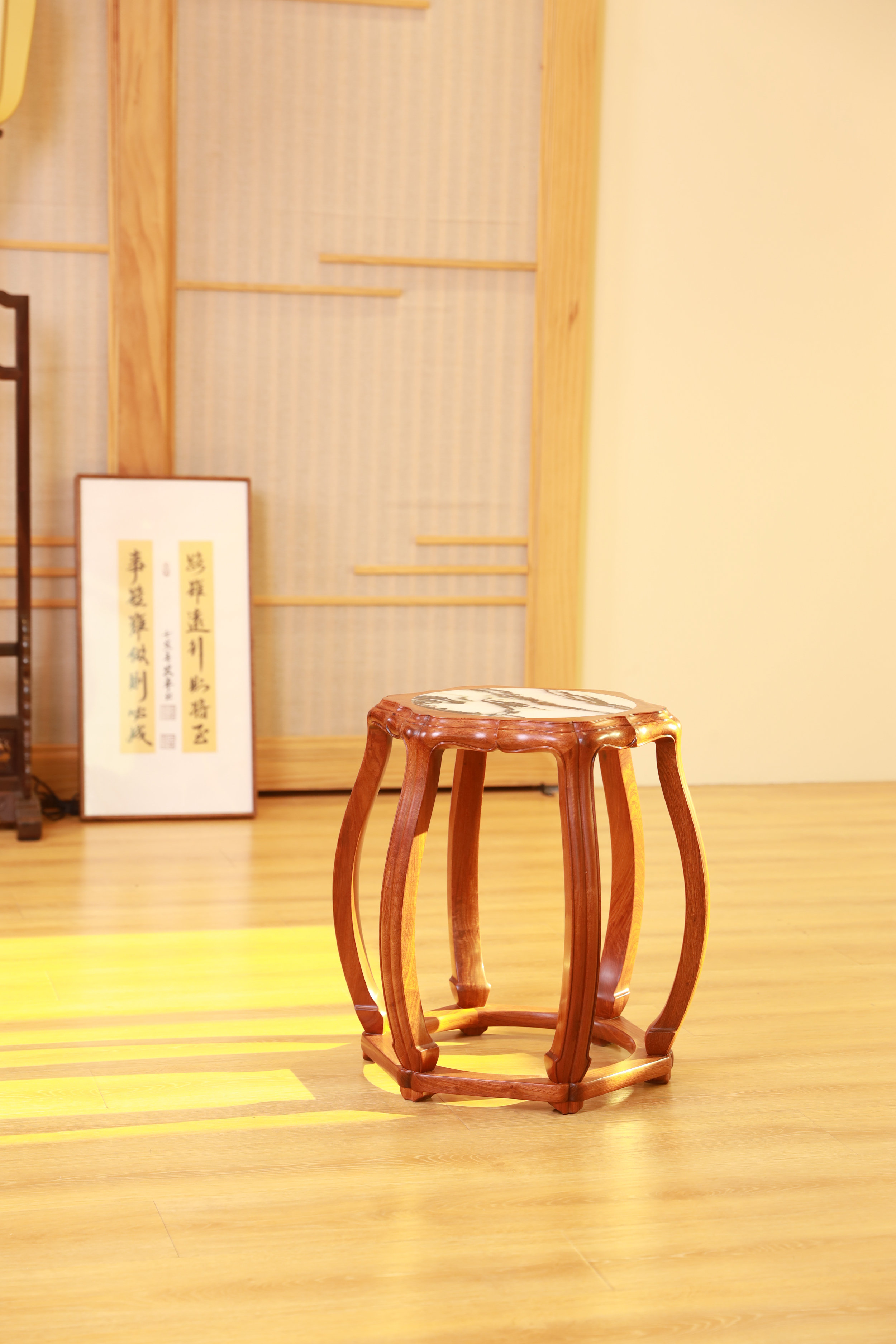 48 石面 六足海棠 圆鼓凳