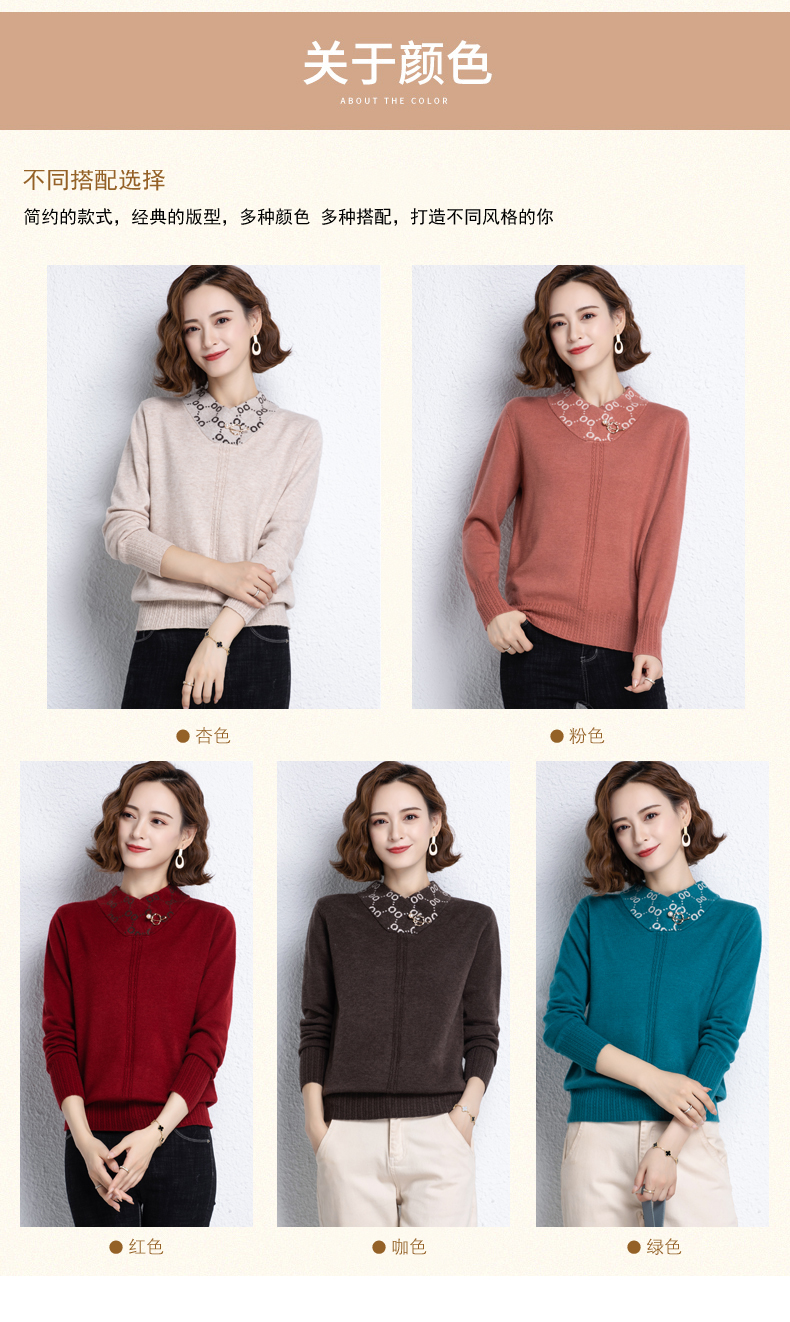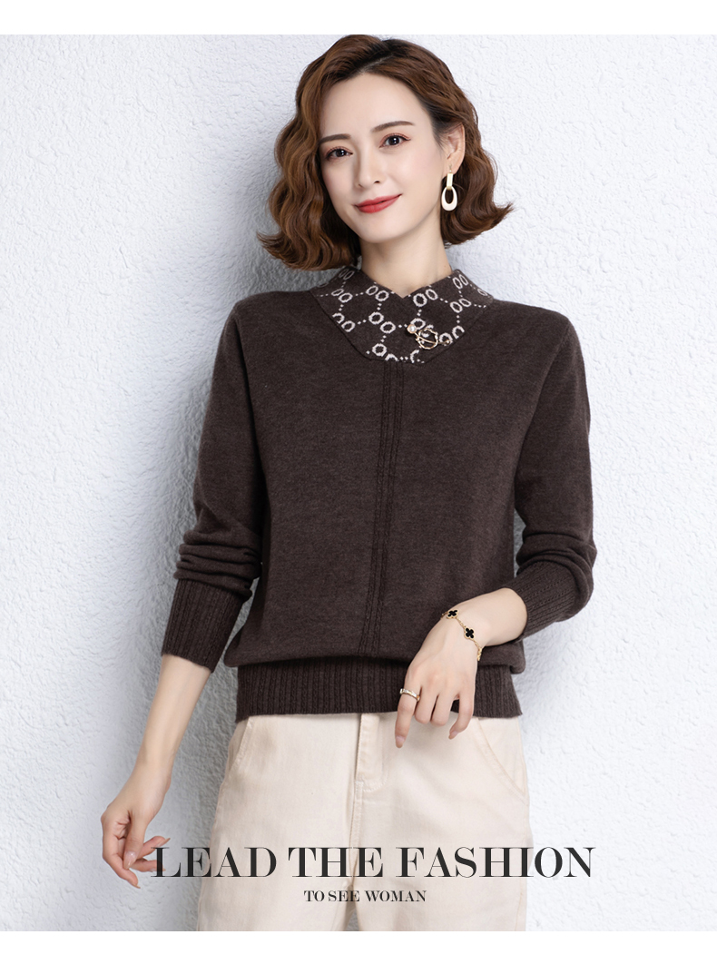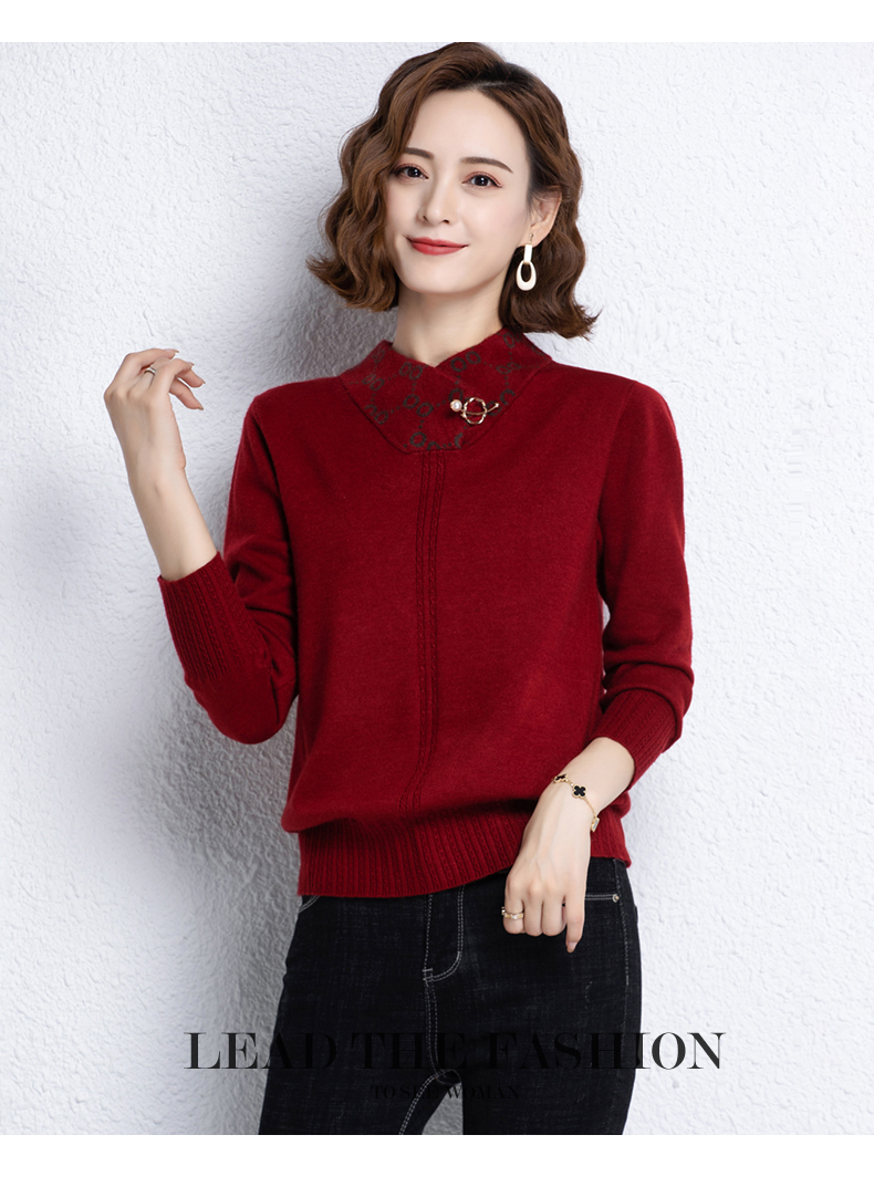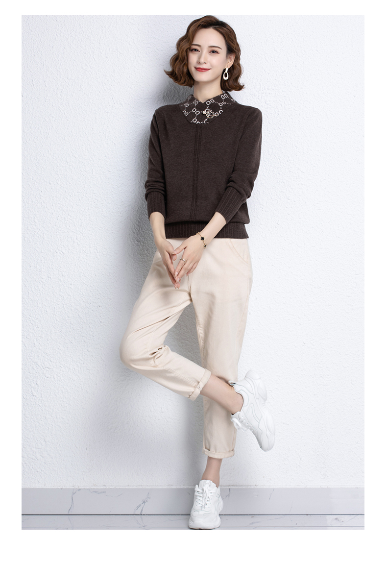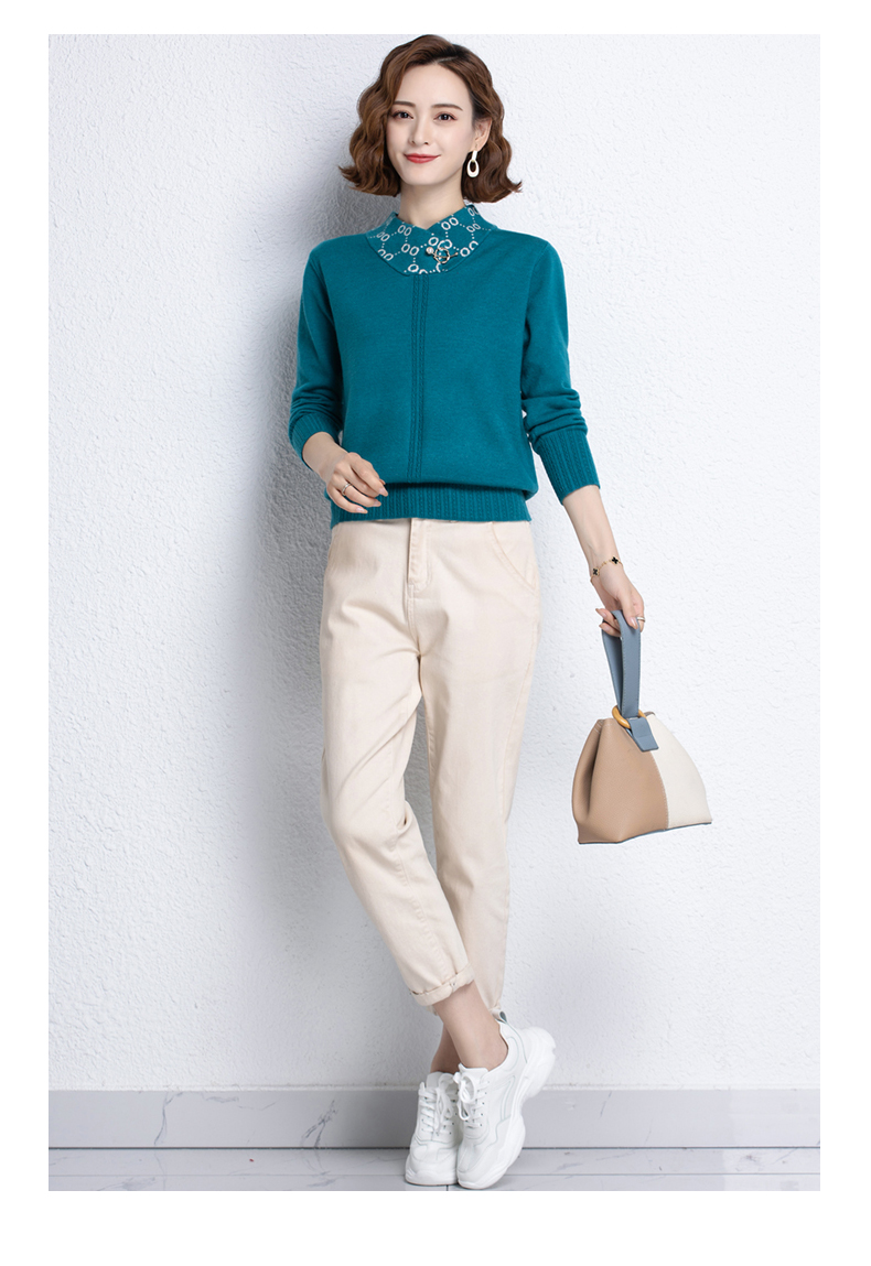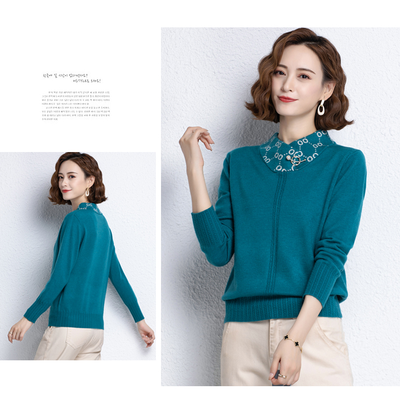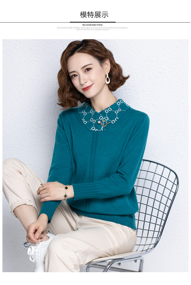 SC15-9982 翻领早秋针织衫新款薄上衣2022女士毛衣娃娃领女士打底衫秋冬毛衣