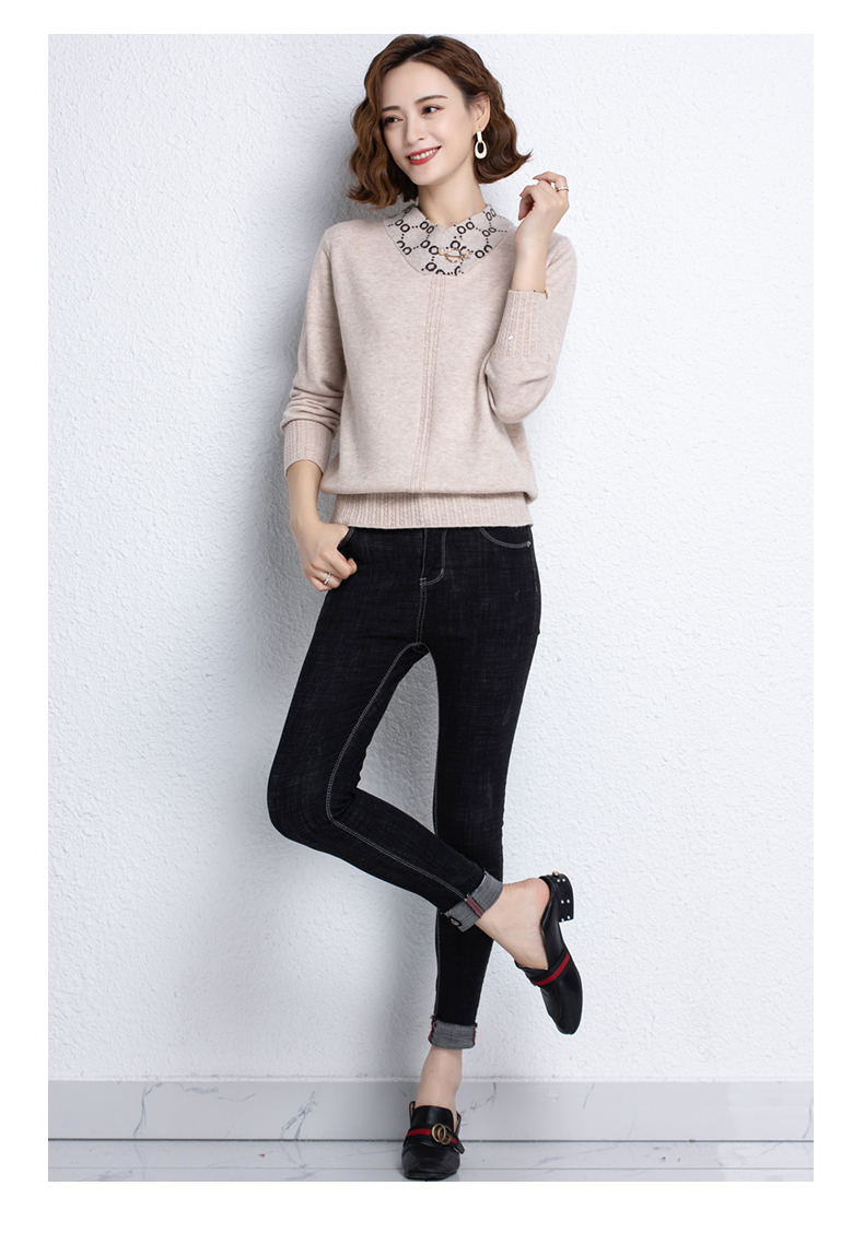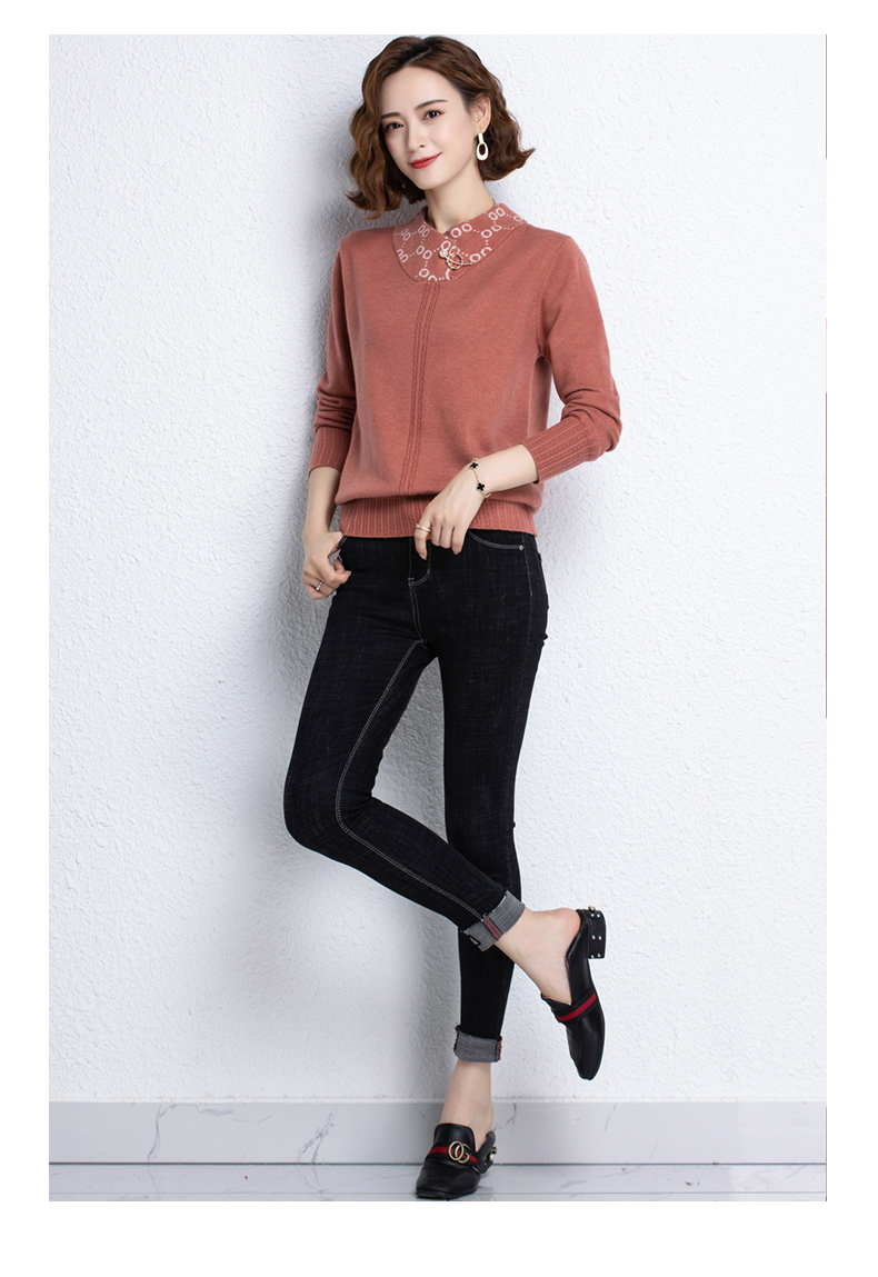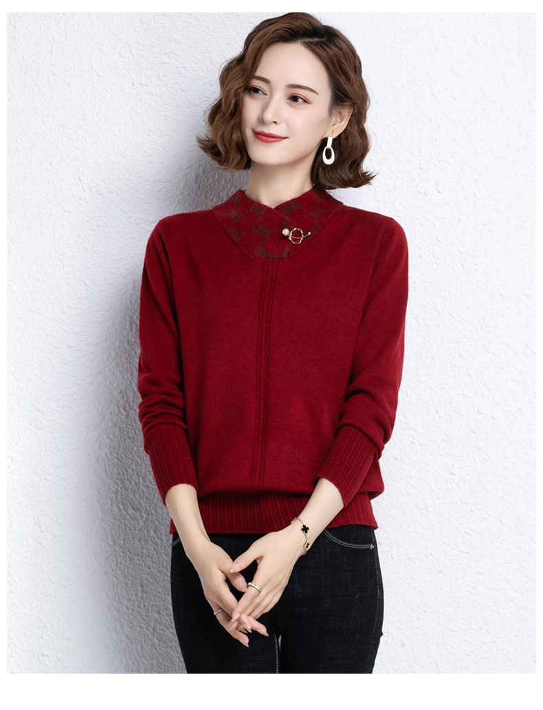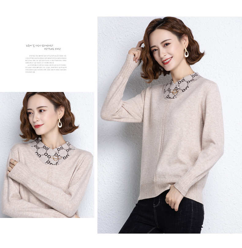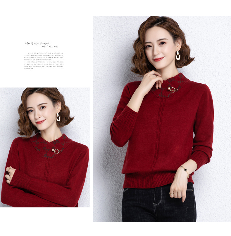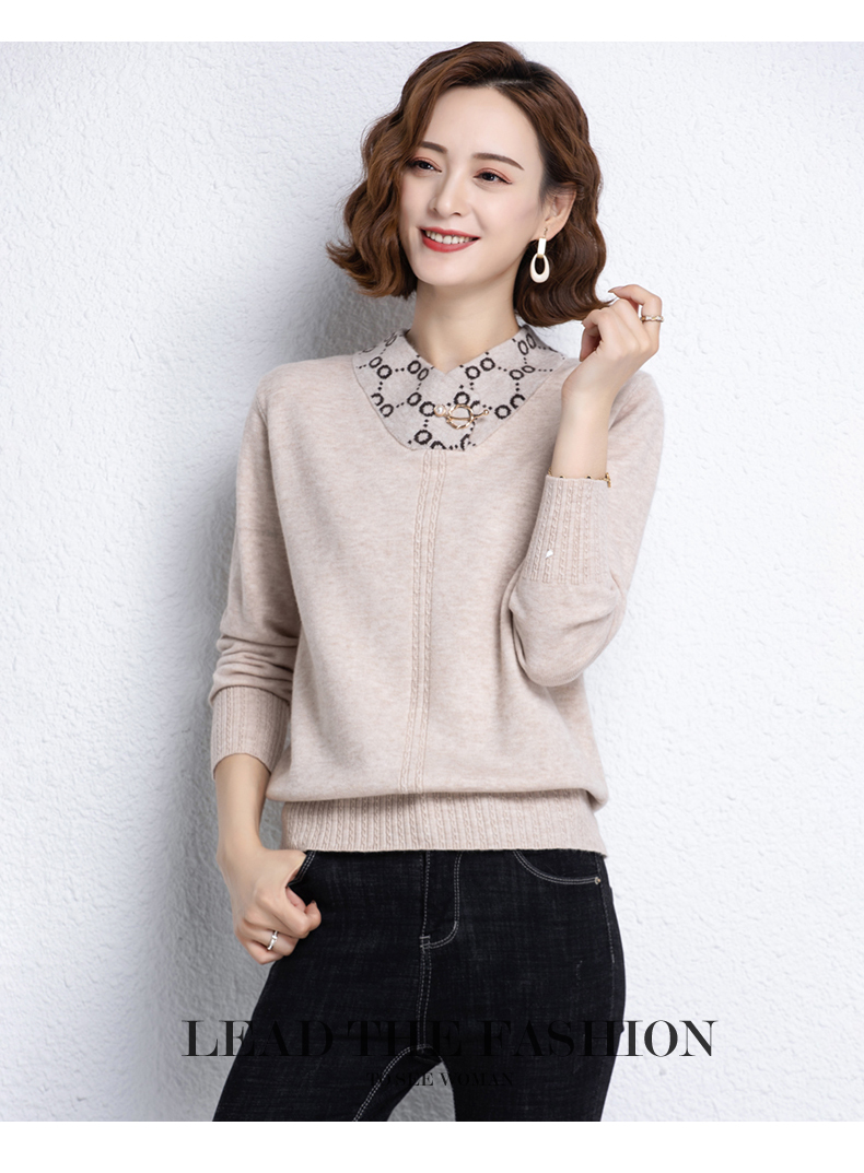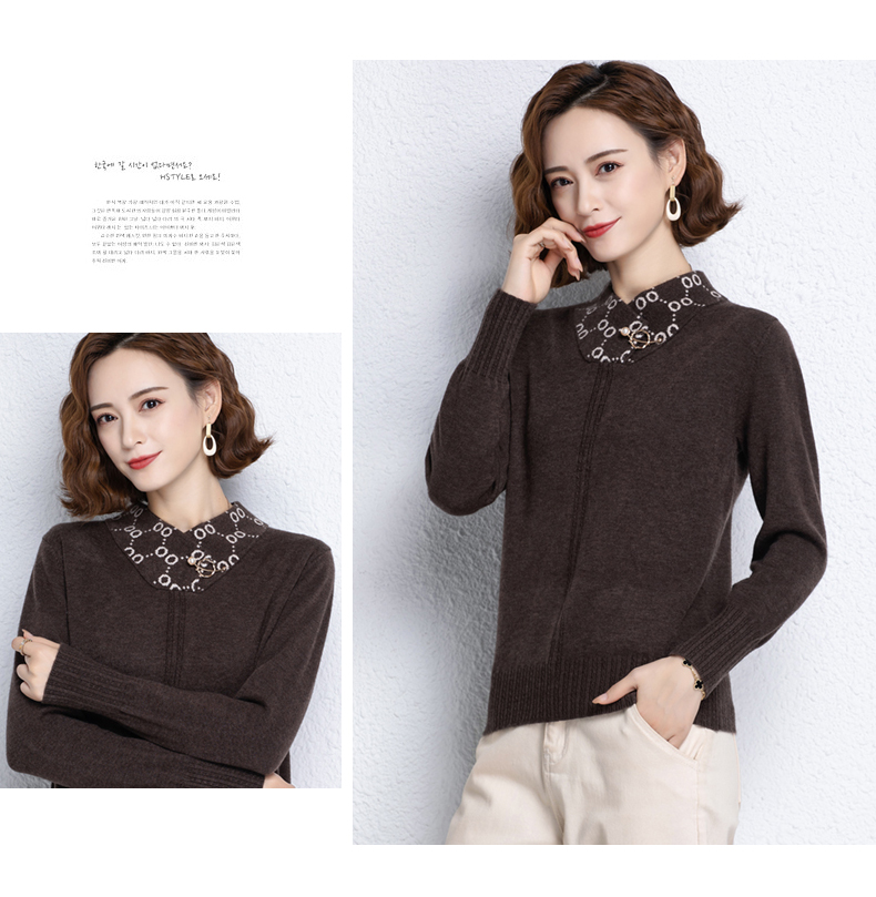 SC15-9982 翻领早秋针织衫新款薄上衣2022女士毛衣娃娃领女士打底衫秋冬毛衣