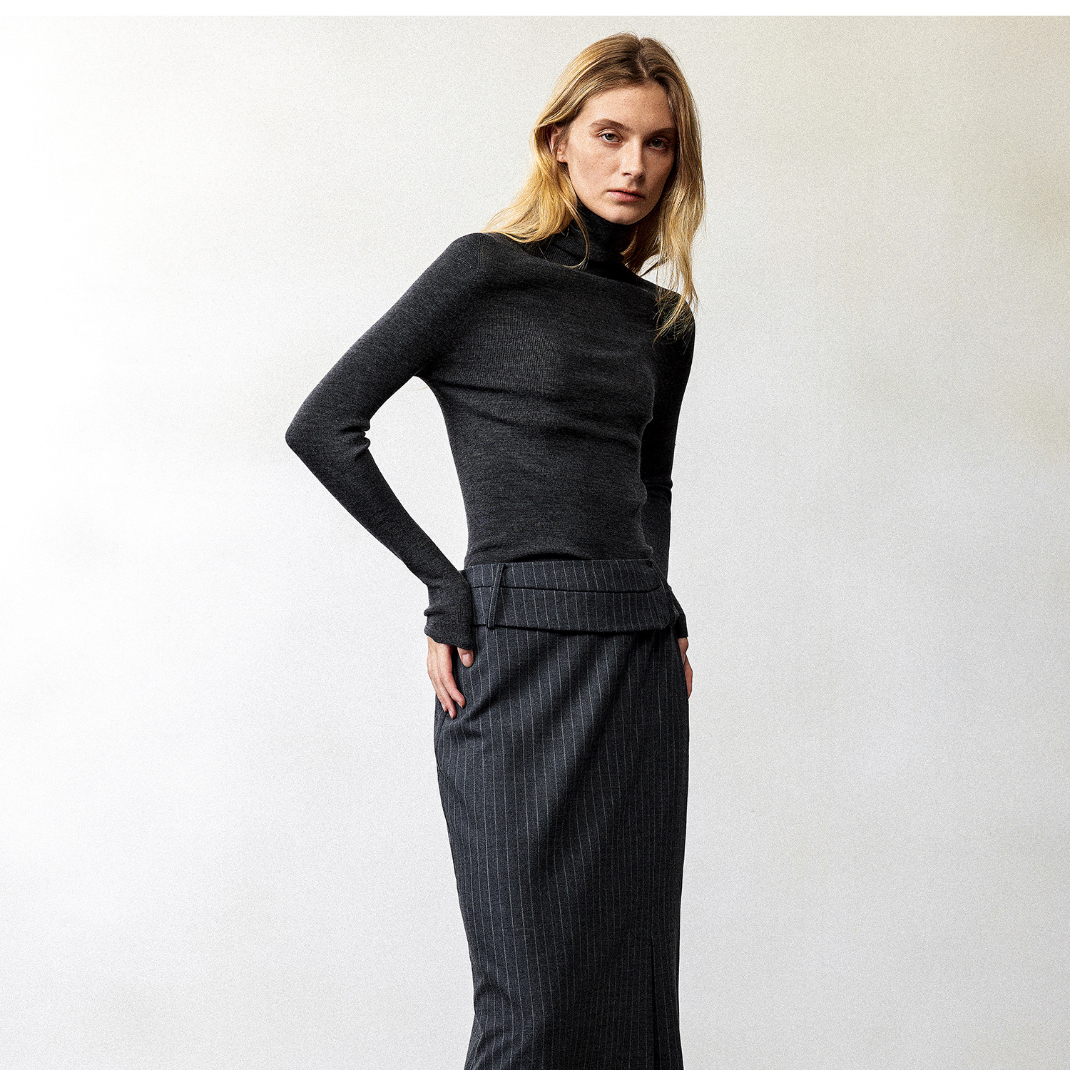 C+IMPRESS/西嘉澳洲初剪羊毛 高智淡人风半身裙垂感直筒裙女