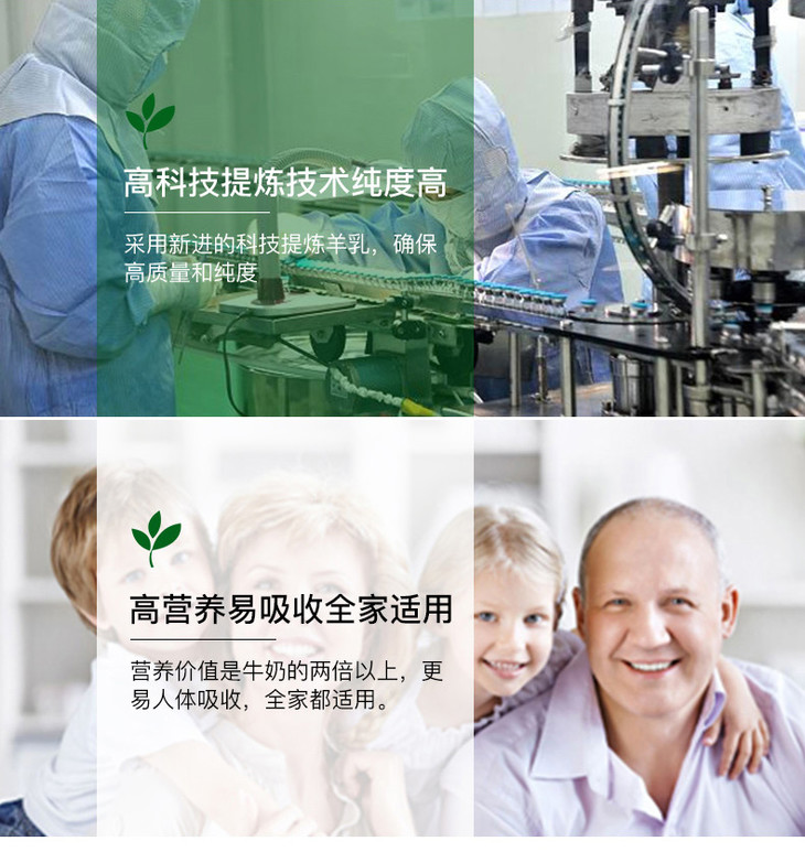 1、羊奶中含有200多种营养物质和生物活性因子,其中蛋白质、矿物质及各种维生素的总含量均高于牛奶