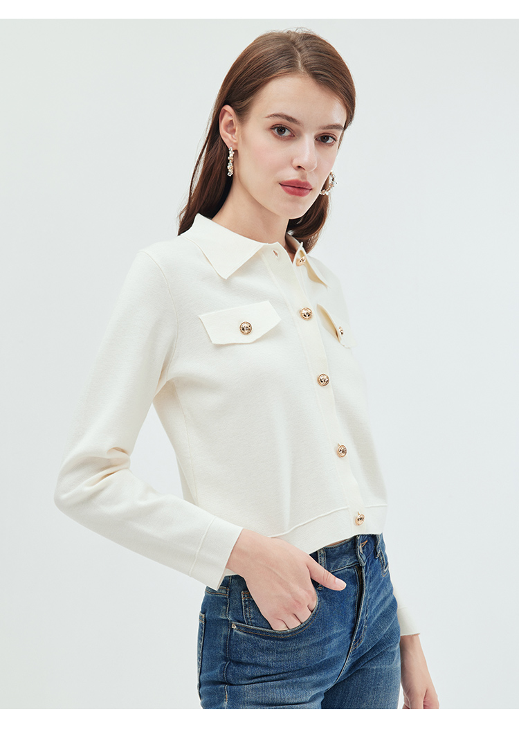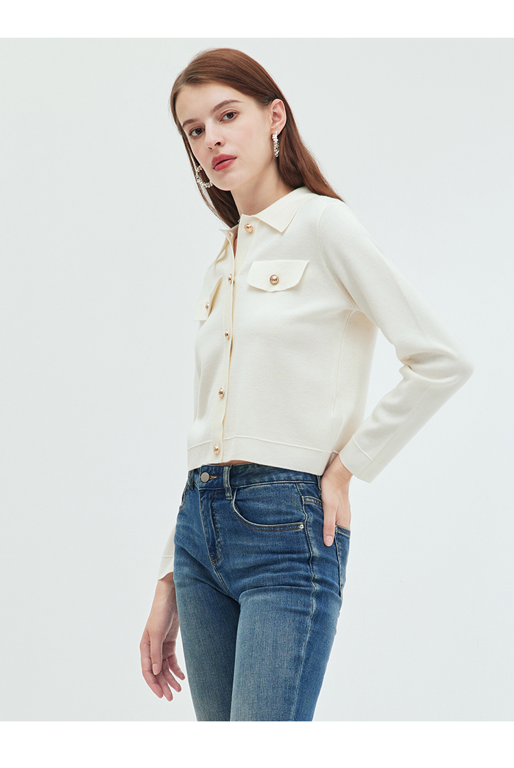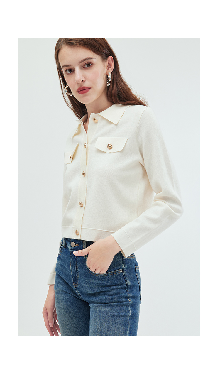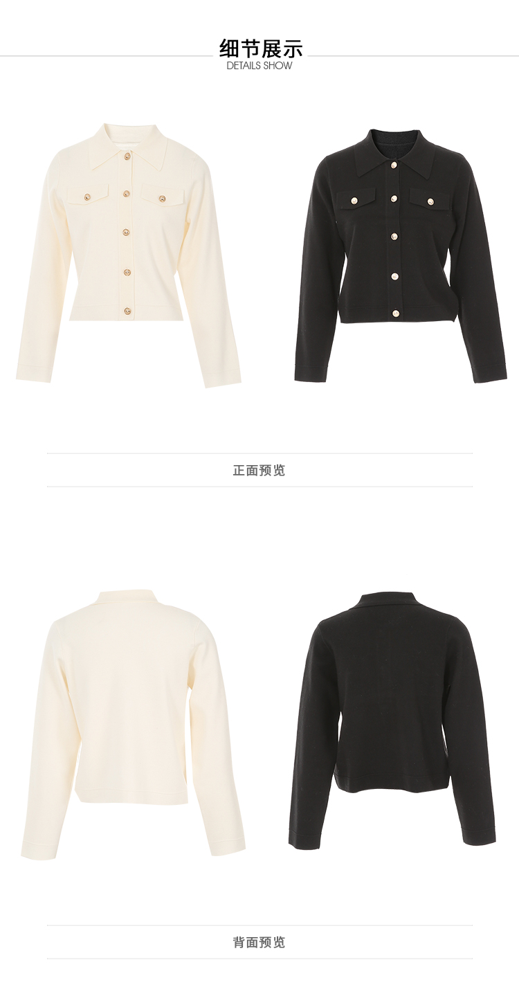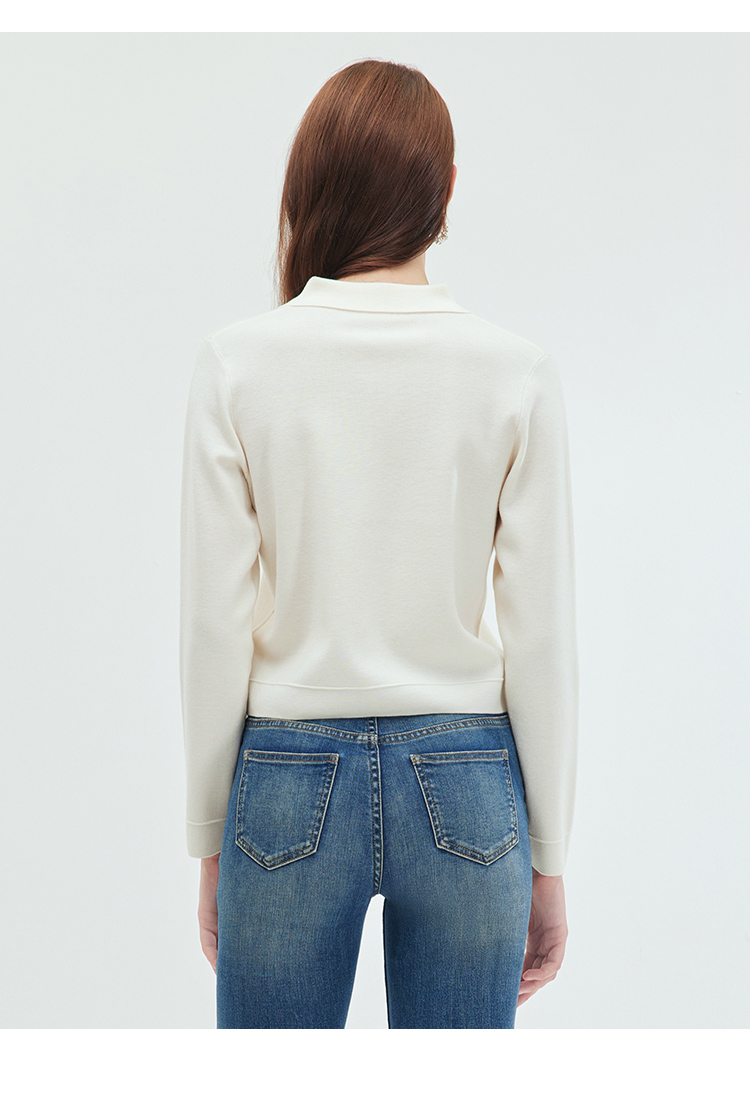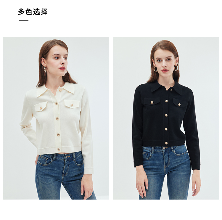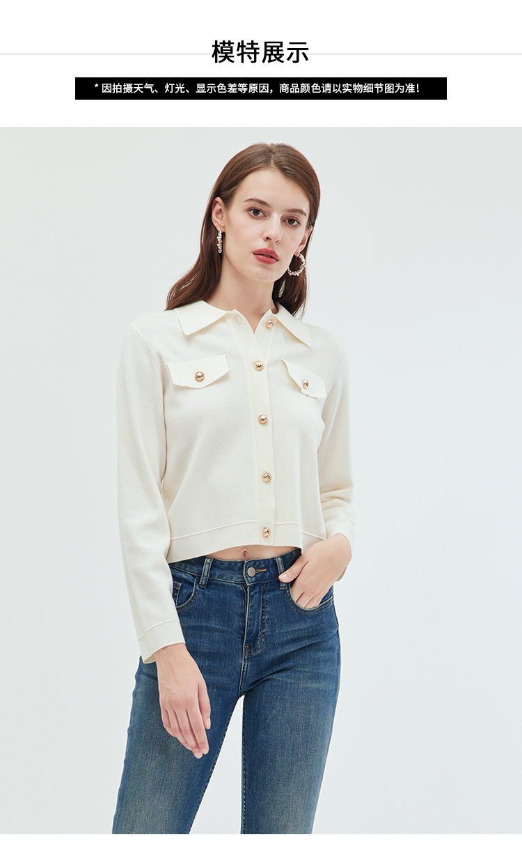 VIMAGE纬漫纪可机洗羊毛衫时尚显瘦白色polo翻领针织开衫秋新款VC2301208