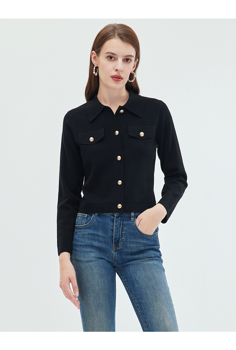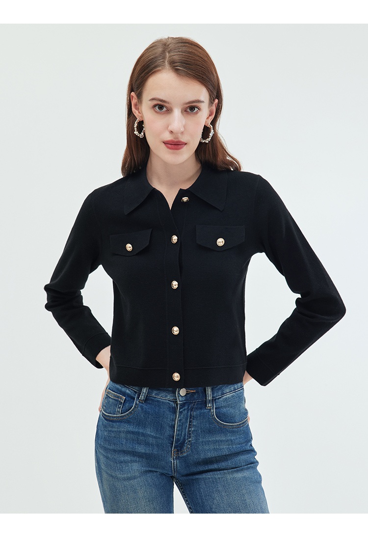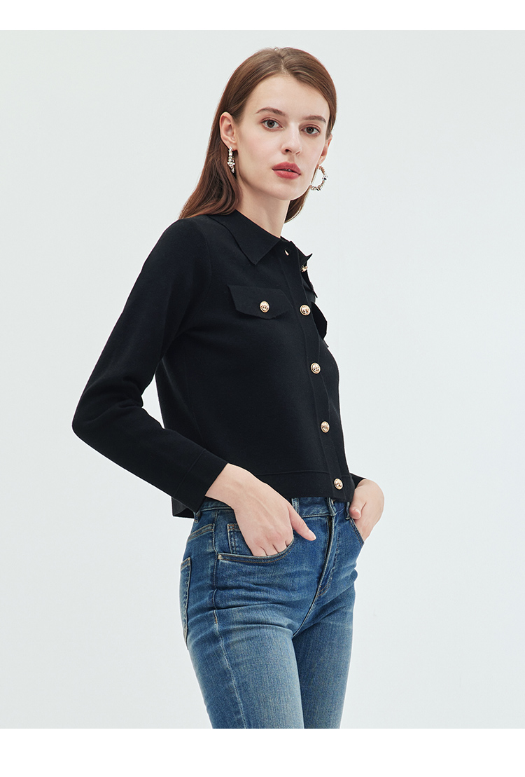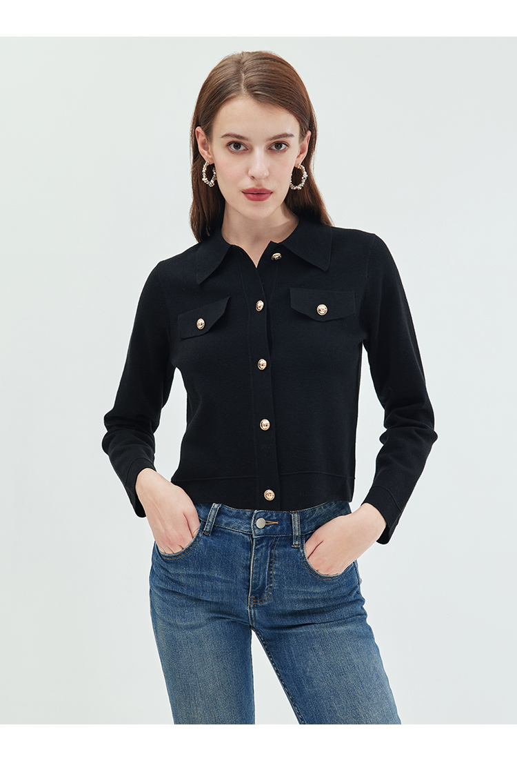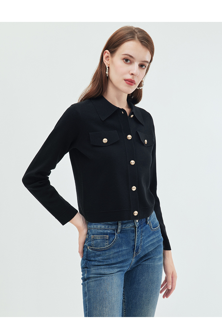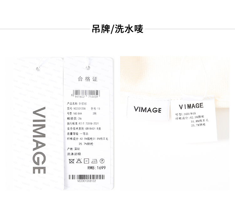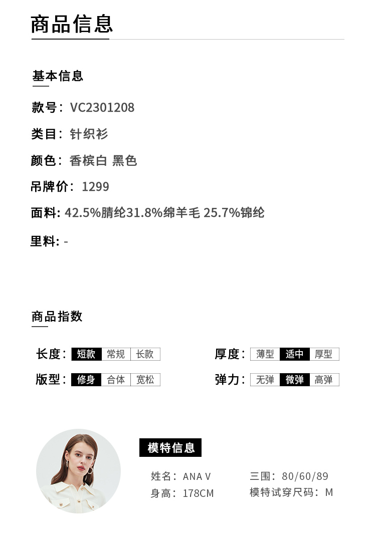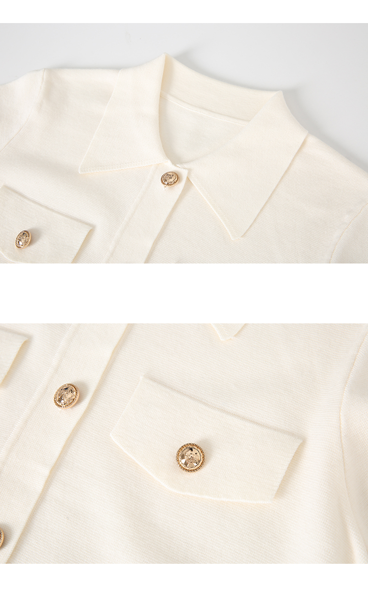 VIMAGE纬漫纪可机洗羊毛衫时尚显瘦白色polo翻领针织开衫秋新款VC2301208