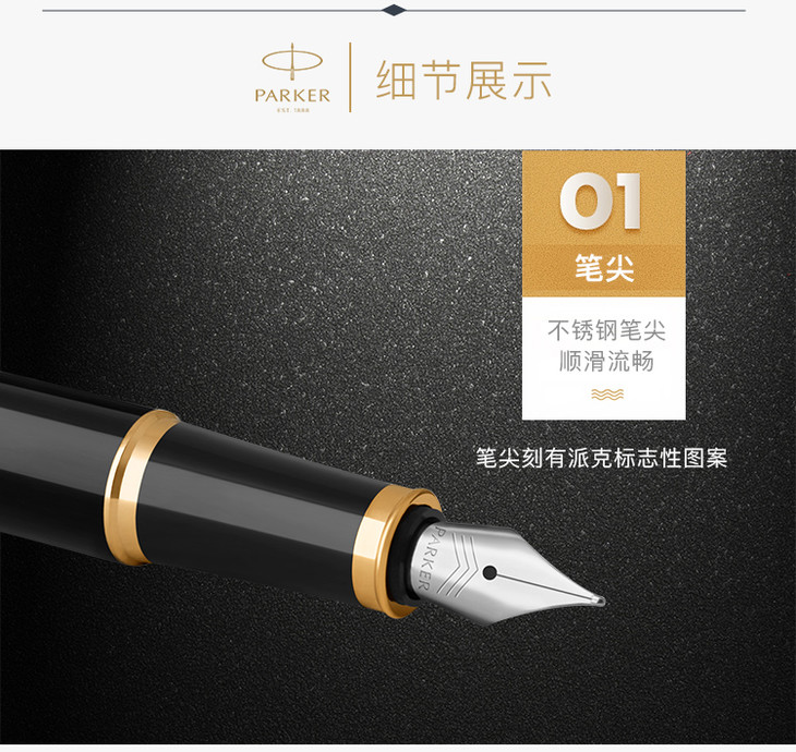 派克(PARKER)IM系列 丽雅黑金夹钢笔/墨水笔