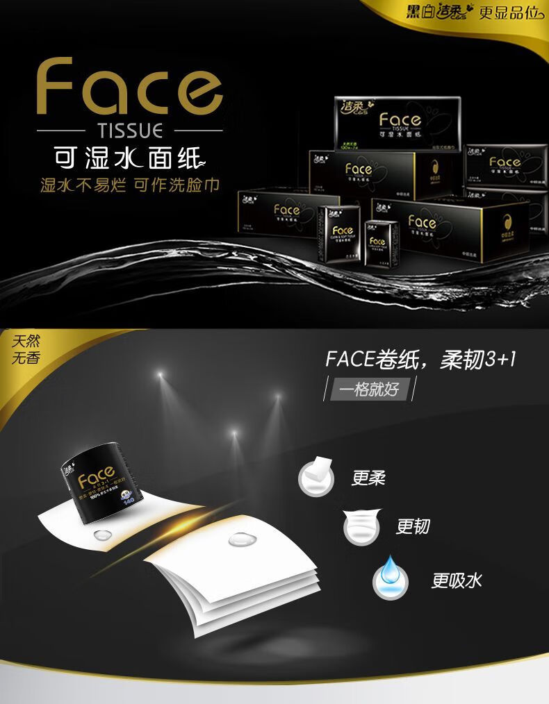 洁柔卷筒卫生纸1400g(黑Face) 单提 BJ168-60R