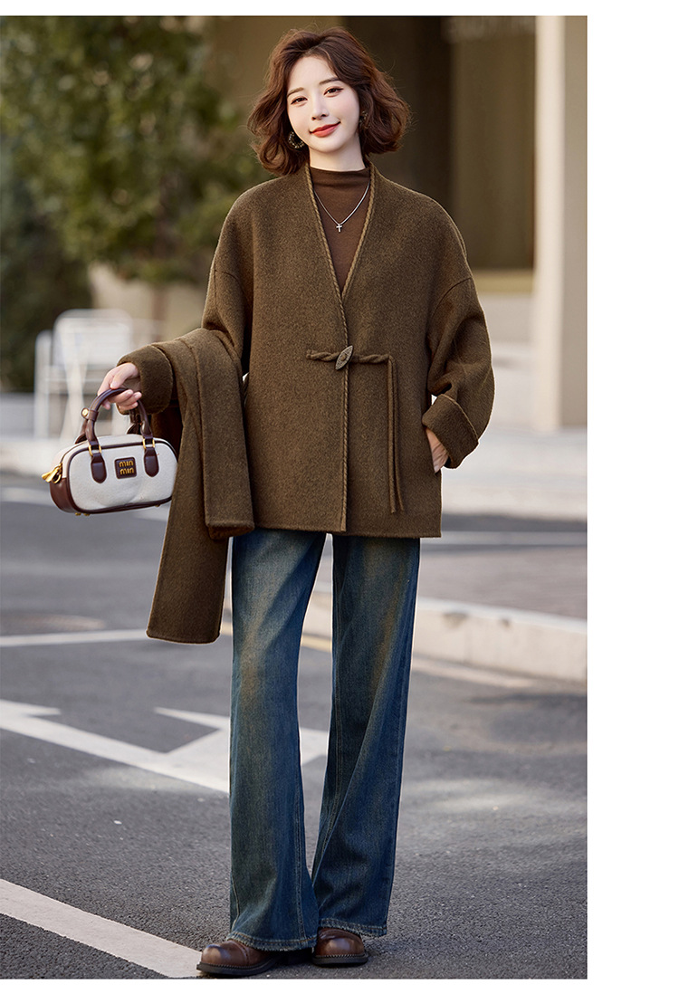 双面羊毛大衣,新中式国风减龄羊毛呢子外套HR-ZYQQ50