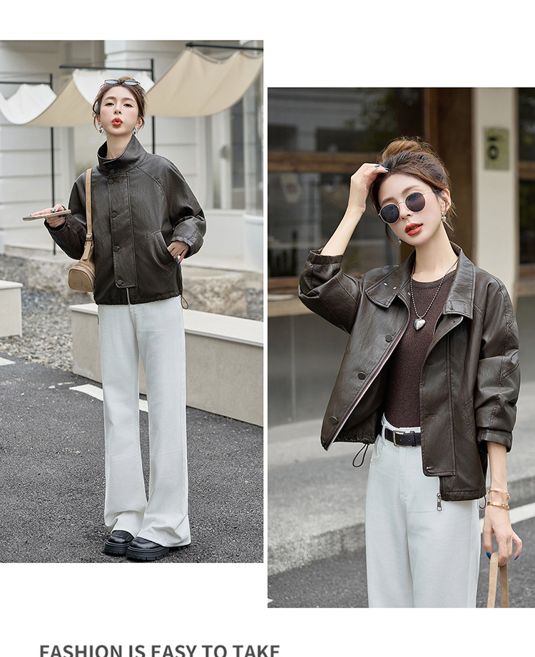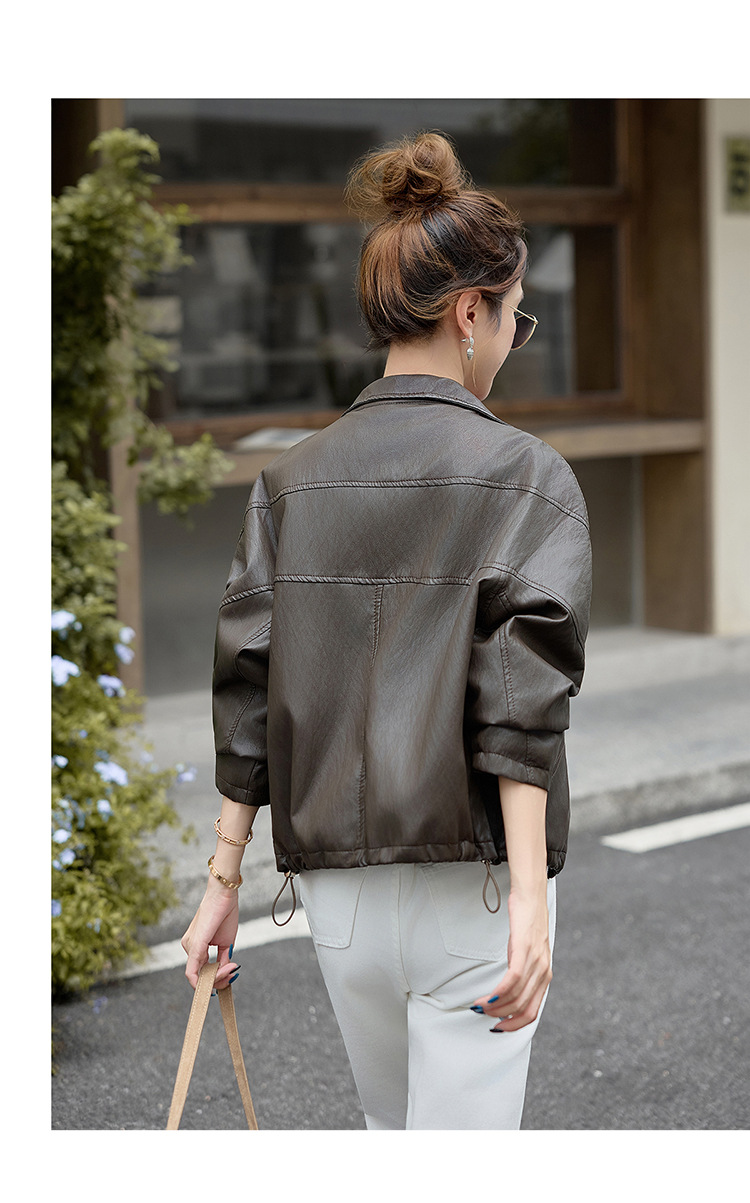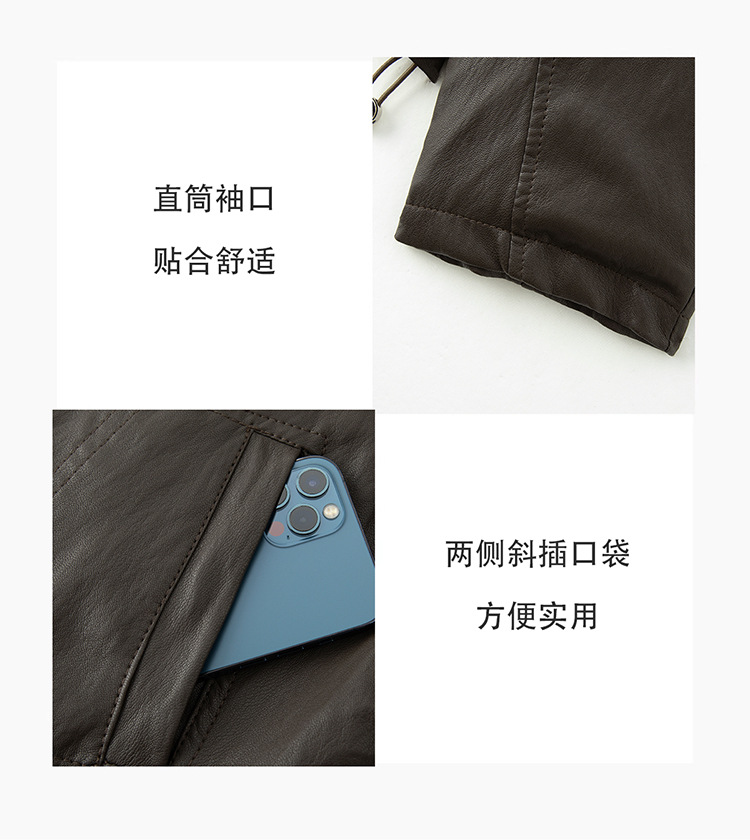 HR WAY2555复古港式短款风衣外套立领休闲皮夹克 商品图3