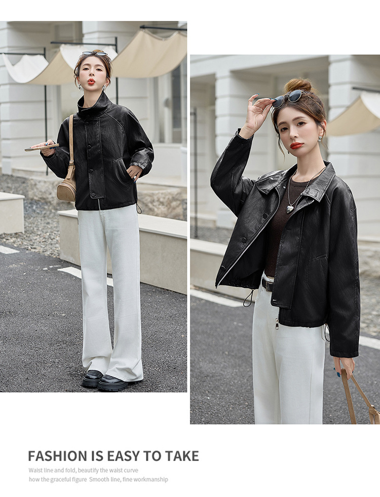 HR WAY2555复古港式短款风衣外套立领休闲皮夹克 商品图2