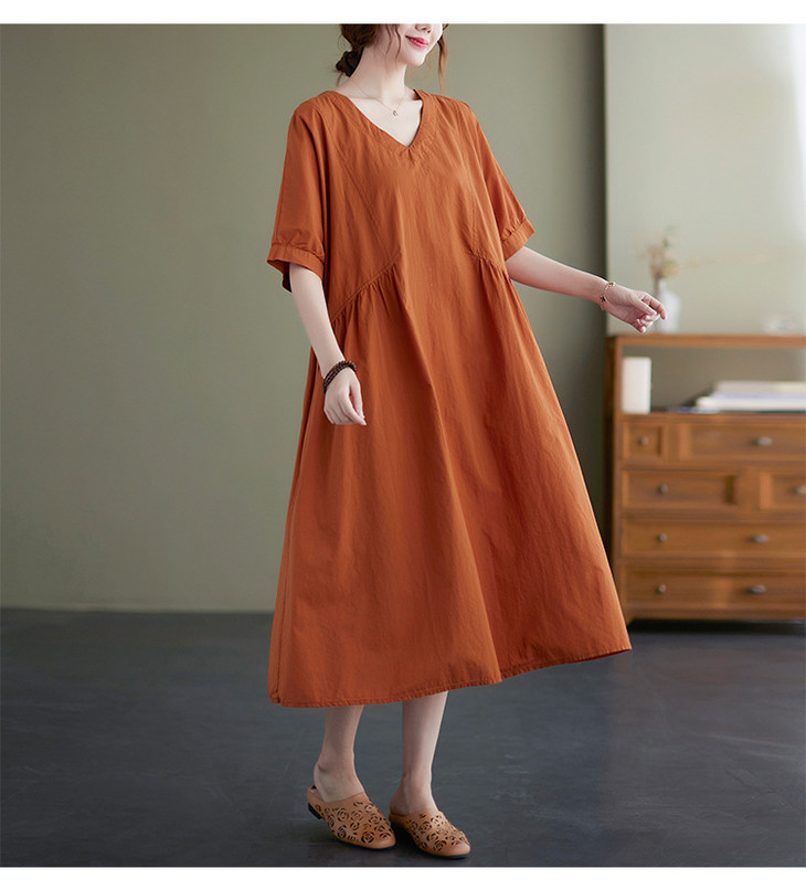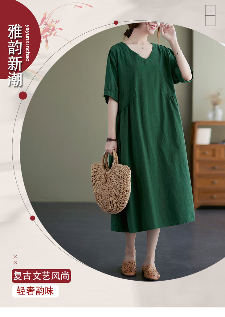 GYH 6093棉麻宽松遮肚气质连衣裙