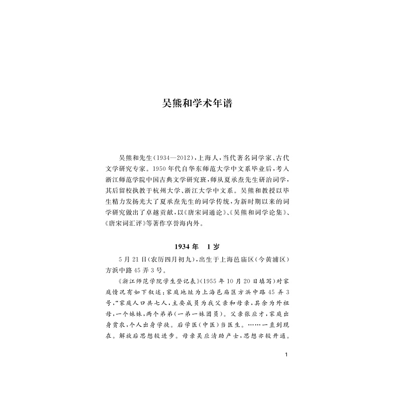 一系列浙大老先生学术年谱之一。吴熊和,1934年出生在上海,1955年毕业于华东师范大学中文系,研究生师从杭州大学“一代词宗”夏承焘,毕业后又留校专从夏承焘学词,毕生驰骋词坛,最终卓然成家。后任教浙江大学,桃李满天下,在词学研究上取得了极大的影响力。本书按年编次吴熊和先生的学术活动,以展现其词学研究之脉络和学术贡献之大端。