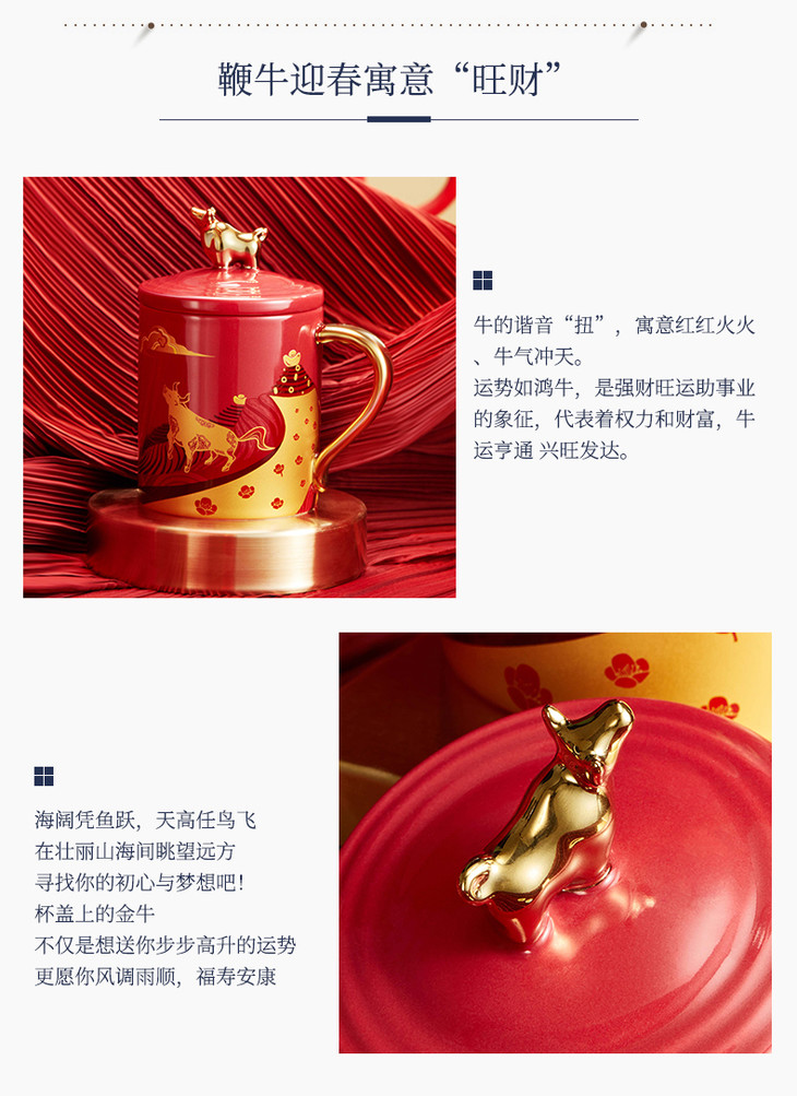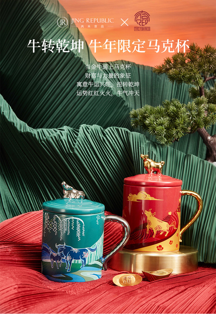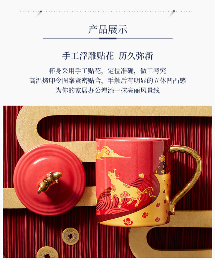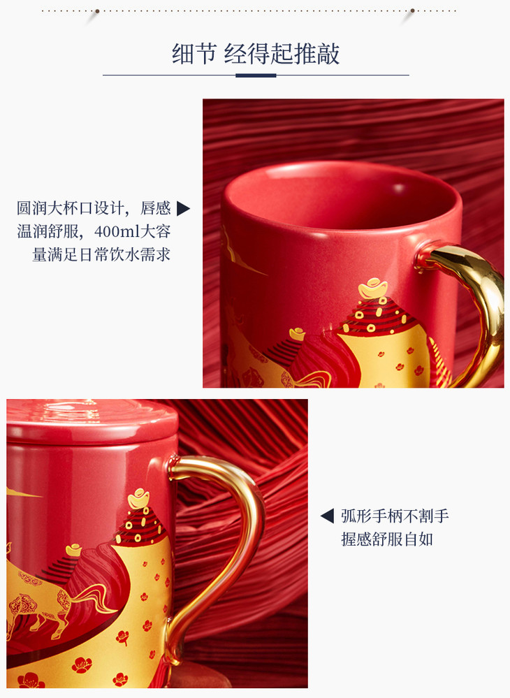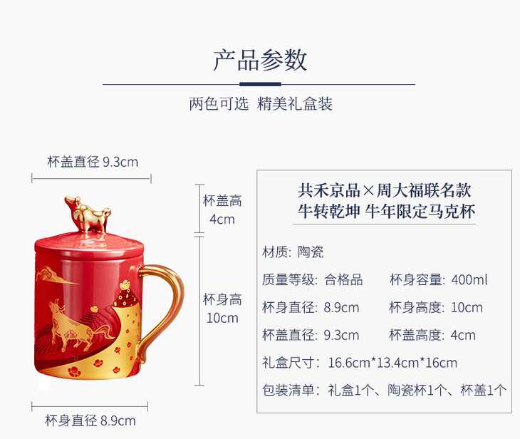 【爆单72小时内发货】共禾京品中国风个性创意送礼带盖勺周大福联名国潮四喜麻将马克杯