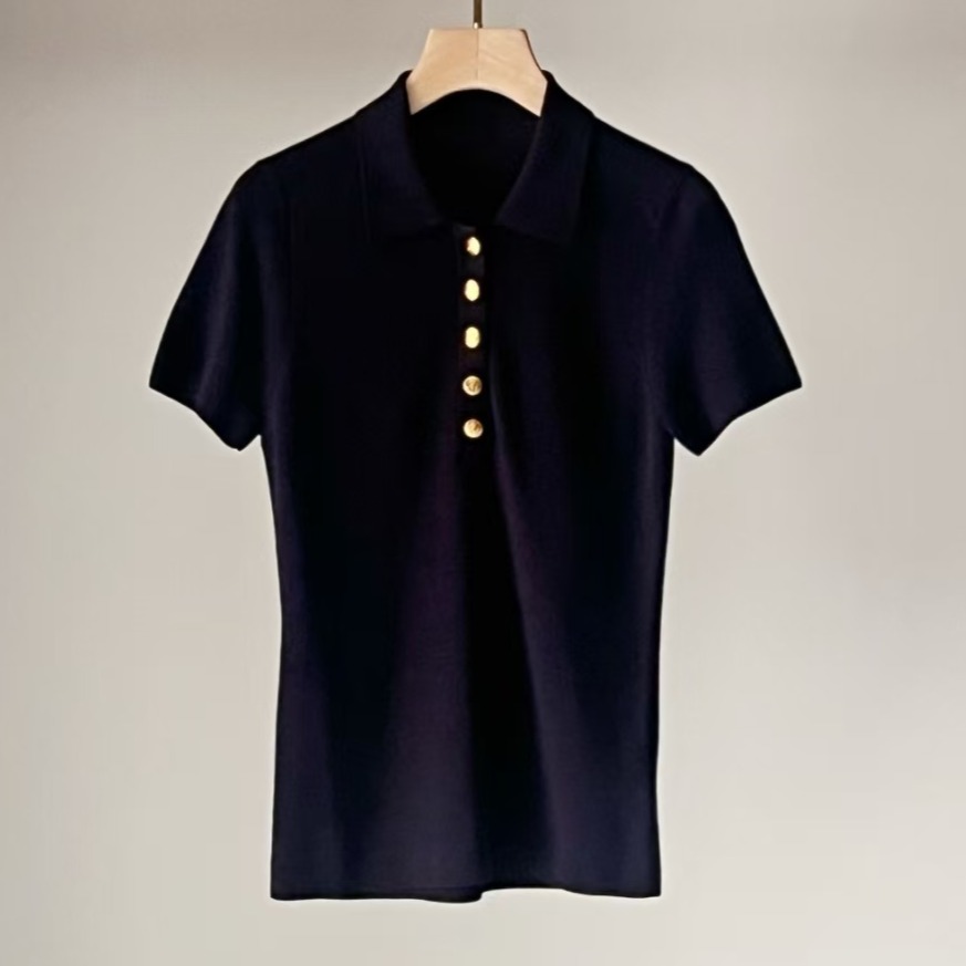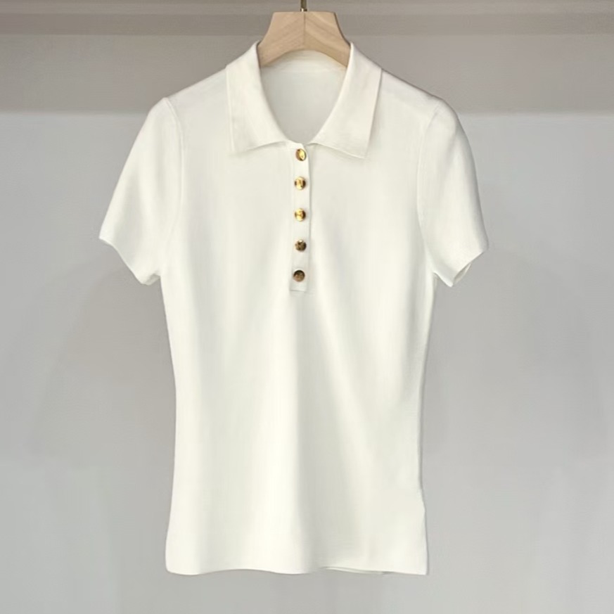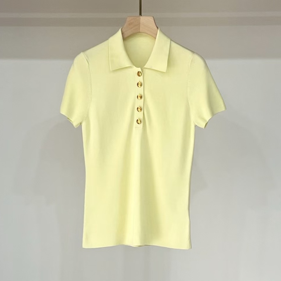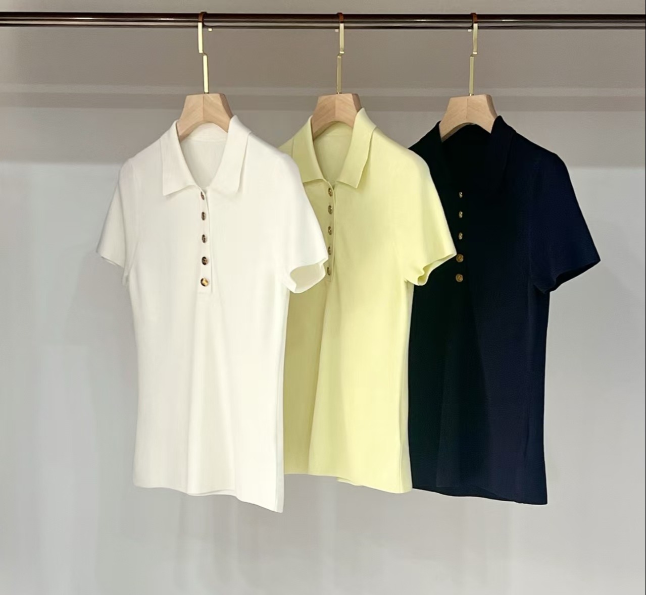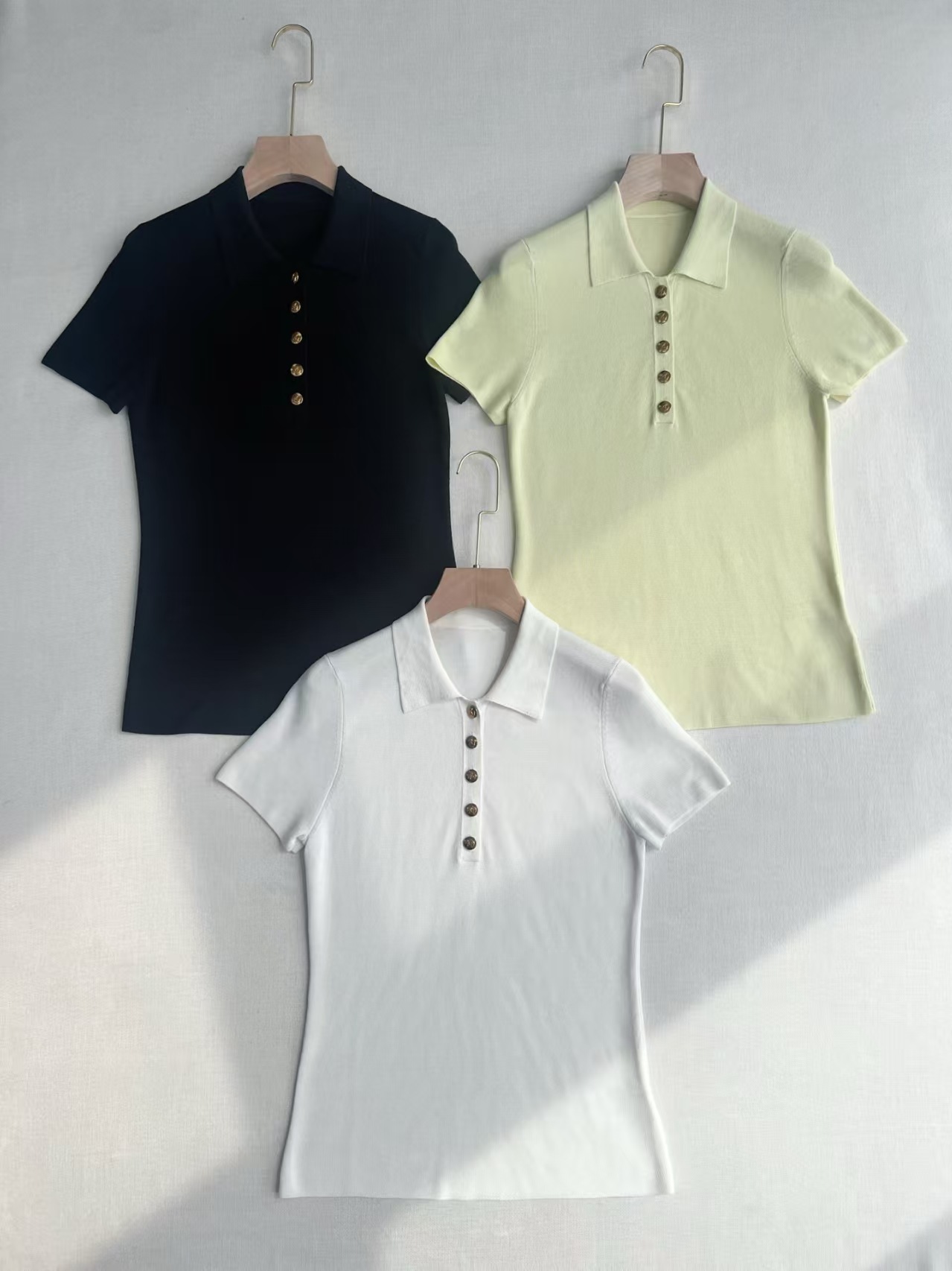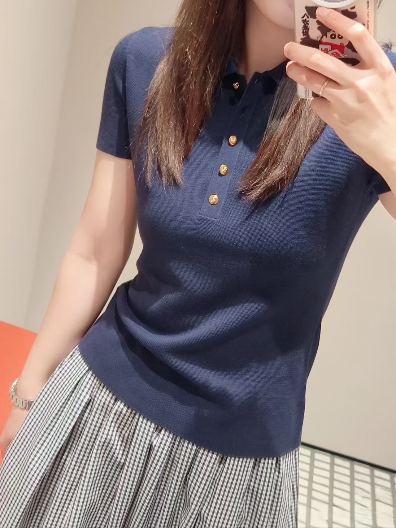 倒肩设计,肩背部线条很美,干练利落的短袖造型